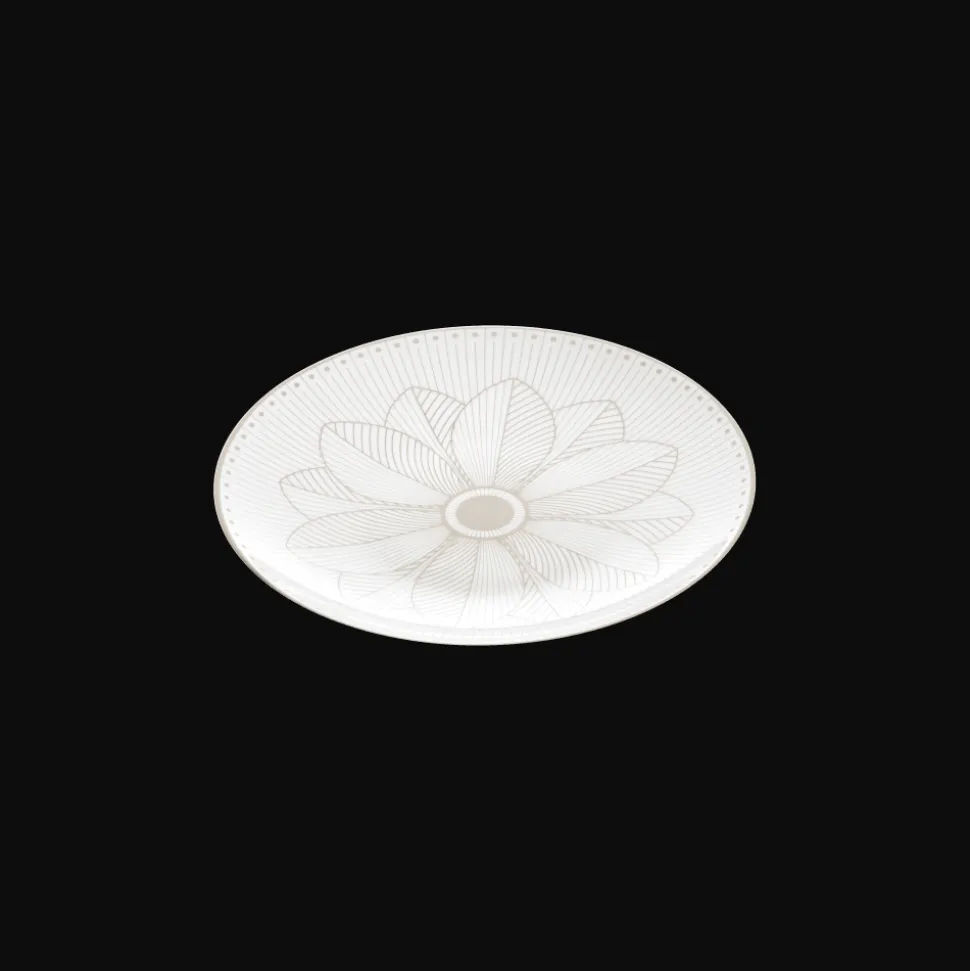 Assiette à pain en porcelaine de Limoges avec décor platine de la Collection Malmaison Impériale. L’assiette à pain permet de présenter le pain à table et se place généralement en haut et à gauche de l’assiette.