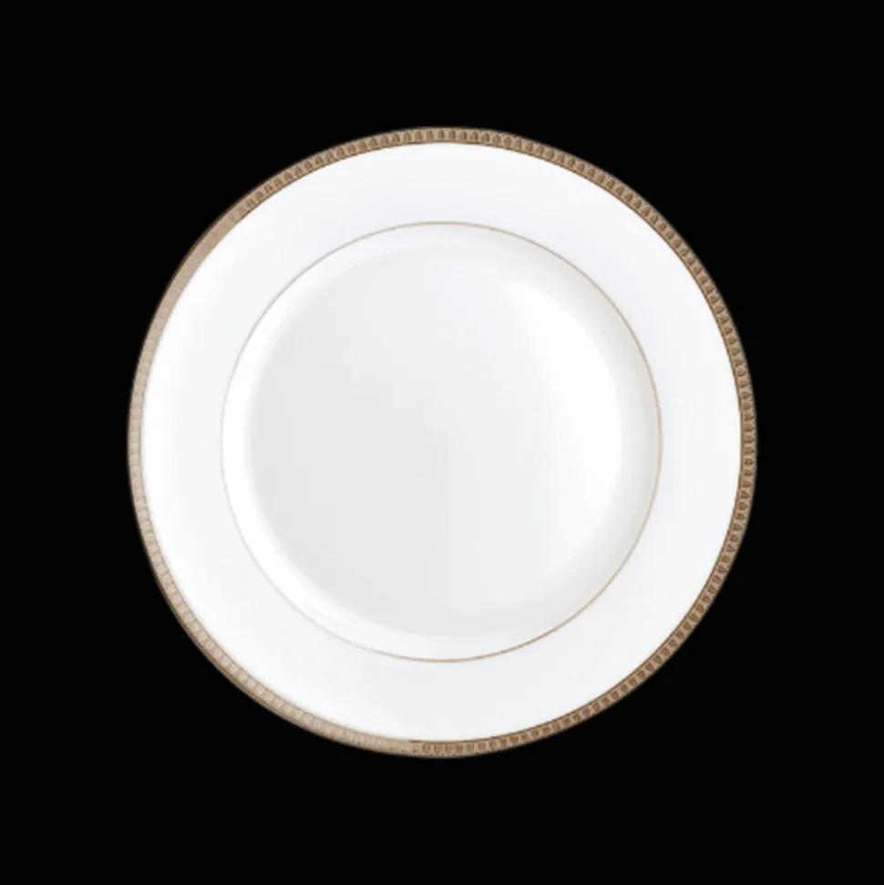Assiette à pain en porcelaine de Limoges filet platine pour une table élégante et signée. L’assiette à pain permet de présenter le pain à table et se place généralement en haut et à gauche de l’assiette.