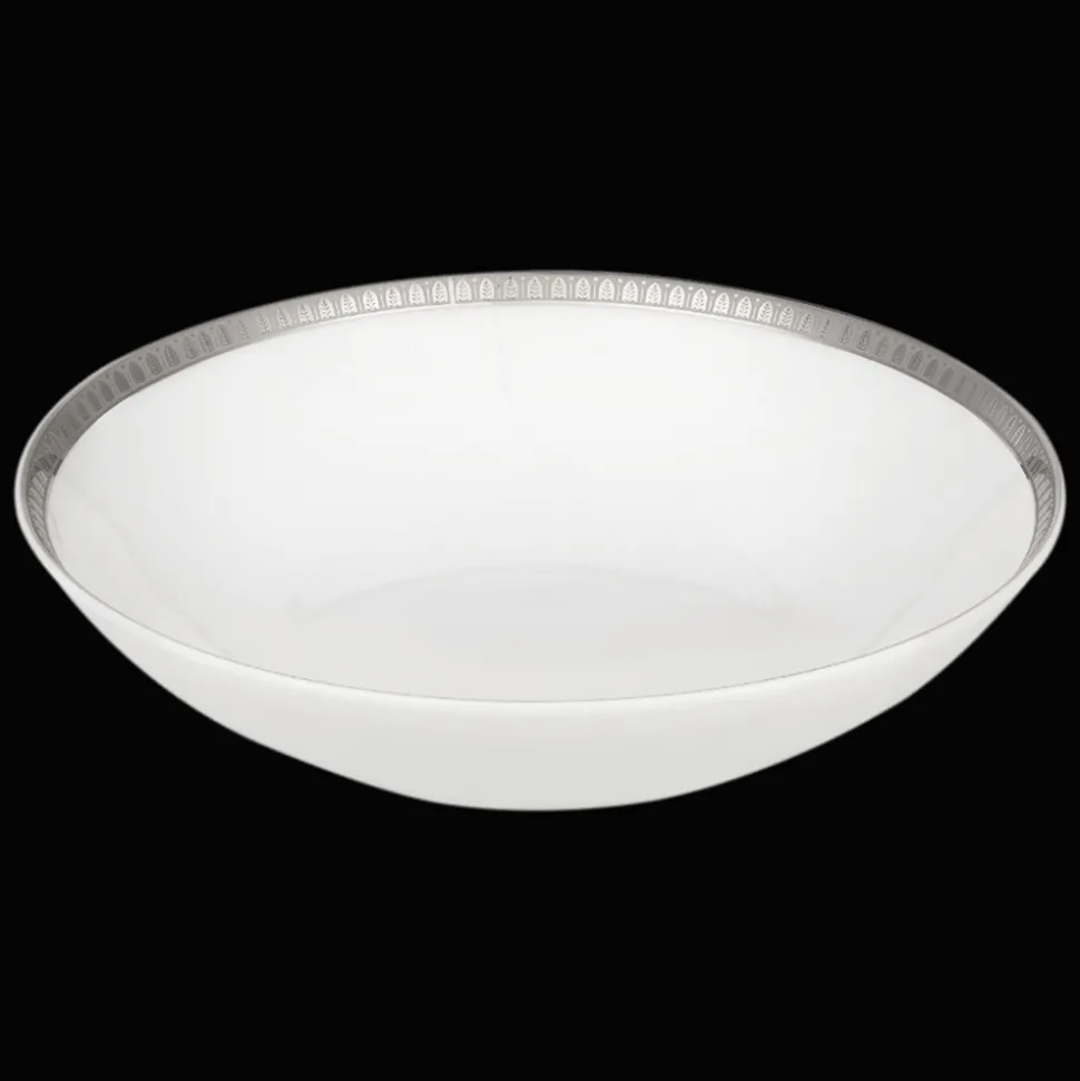Assiette creuse à calotte en porcelaine de Limoges décoré d’un filet en platine, pour une table élégante et raffinée.