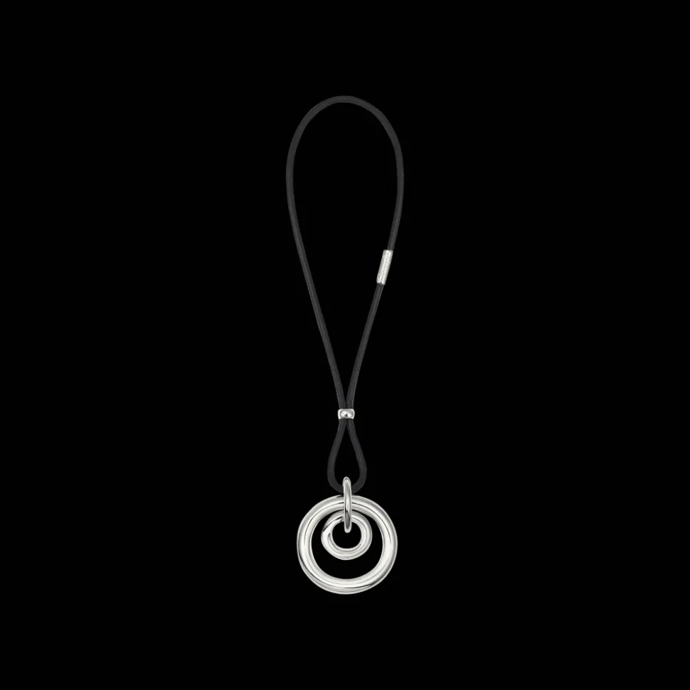 Le bijoux de sac, généreux et moderne, est doté de deux larges anneaux Idole. Un cordon de cuir permet de l’attacher autour de la anse du sac pour accessoiriser les tenues.
