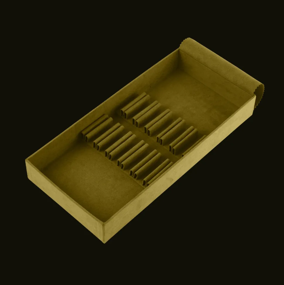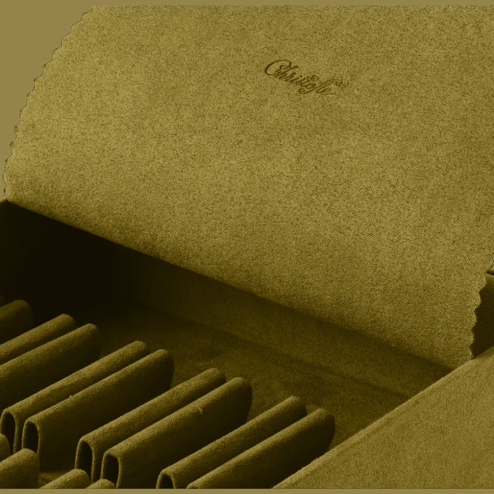 Module de rangement Vert Impérial taille L comportant deux chevalets de 12 encoches pour couteau. Modules et rabat en tissu anti-oxydant. Disponibles à l’unité ou lors de l’achat d’une boite ou d’un coffre de rangement.