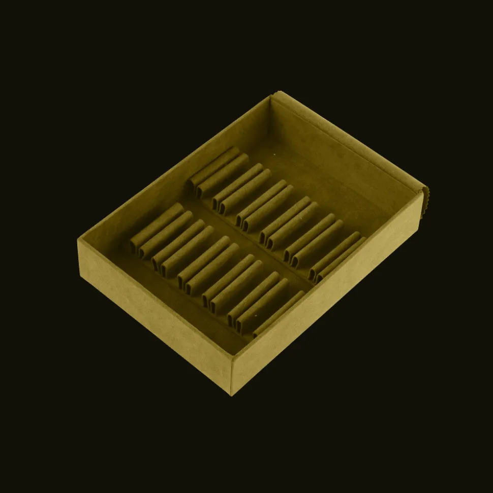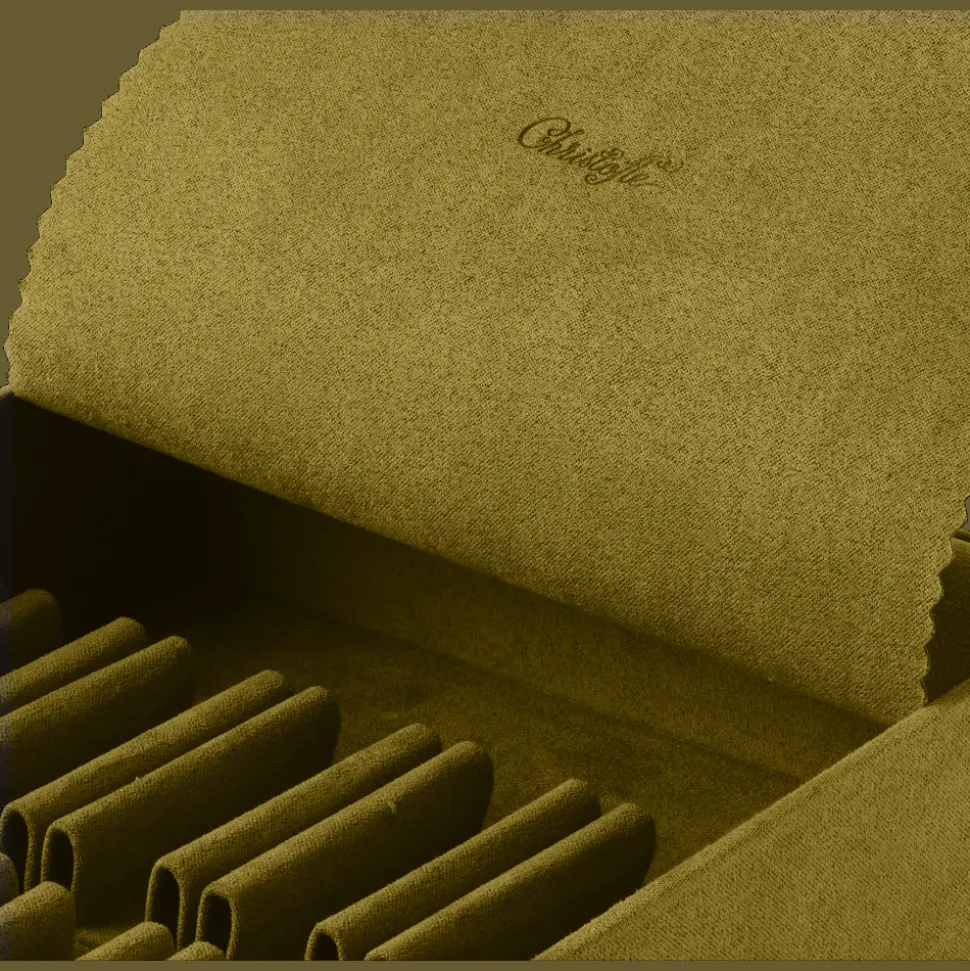 Module de rangement Vert Impérial Taille M comportant deux chevalets de 12 encoches pour couteau à dessert et tartineur. Modules et rabat en tissu anti-oxydant. Disponibles à l’unité ou lors de l’achat d’une boite ou d’un coffre de rangement.