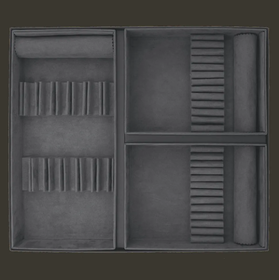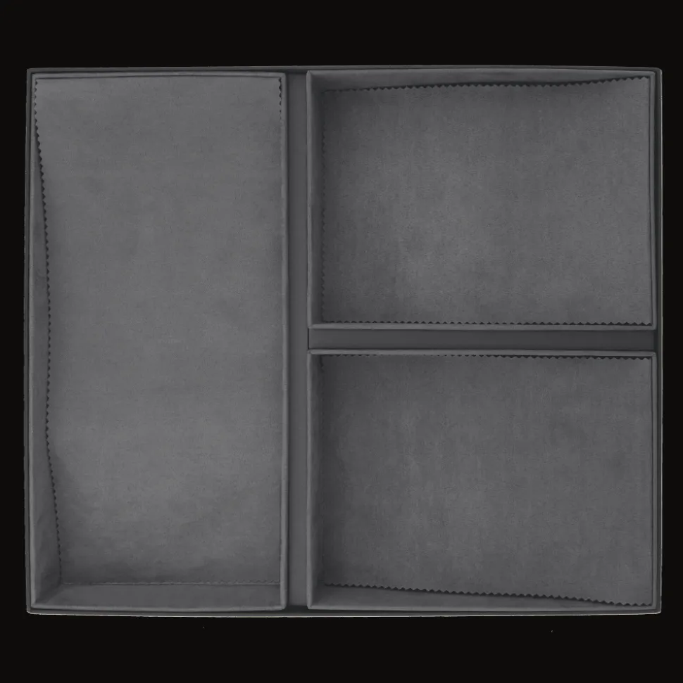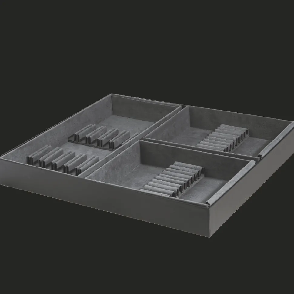 Elle possède 3 modules de rangement Vert Impérial contenant des compartiments amovibles pour ranger vos couverts et leur éviter qu’ils ne soient rayés. Ces modules sont gainés d’un tissu anti-oxydant, permettant le retardement de l’oxydation des couverts. Ils peuvent être rangés dans la boîte de rangement Christofle ou peuvent être facilement mis dans les tiroirs dans votre cuisine ou dans n’importe quel meuble.