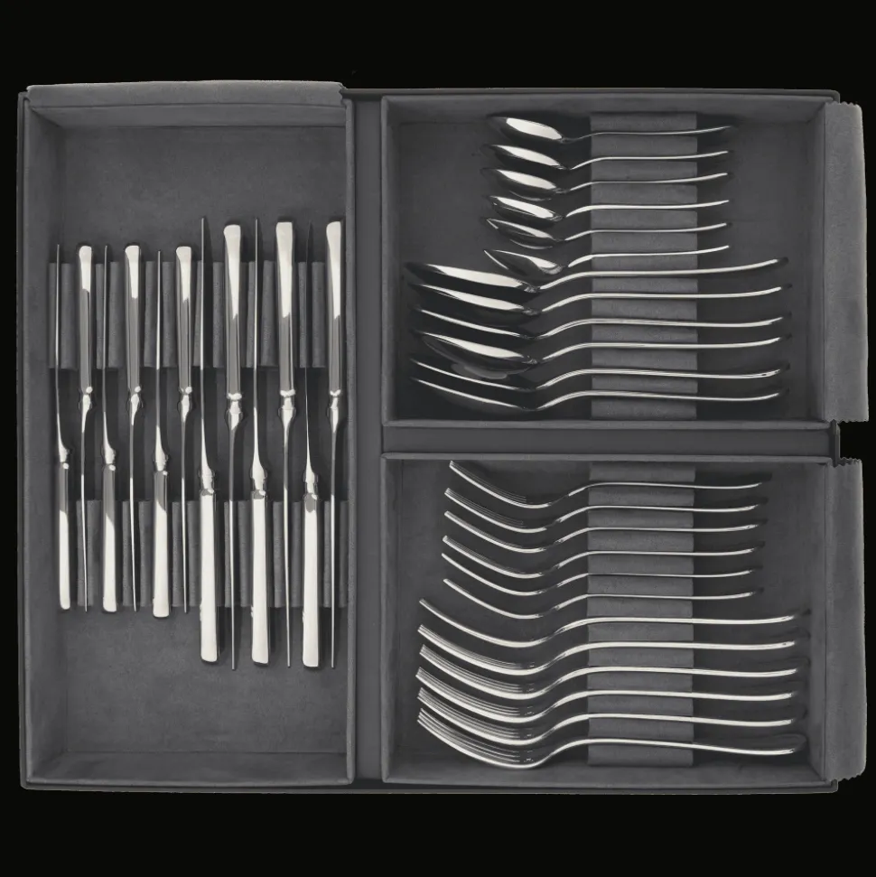 Cette petite boîte de rangement Christofle peut contenir un ensemble de couverts Christofle de 24 ou 36 pièces (vendu sans couverts). On peut y ranger au maximum 36 pièces (avec compartiments de rangement).
