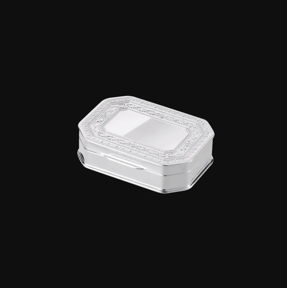 La bonbonnière à pans coupés accueille vos petits secrets ou gourmandises, en ouvrant son couvercle à charnière. En métal argenté, elle est personnalisable grâce à notre service de gravure.