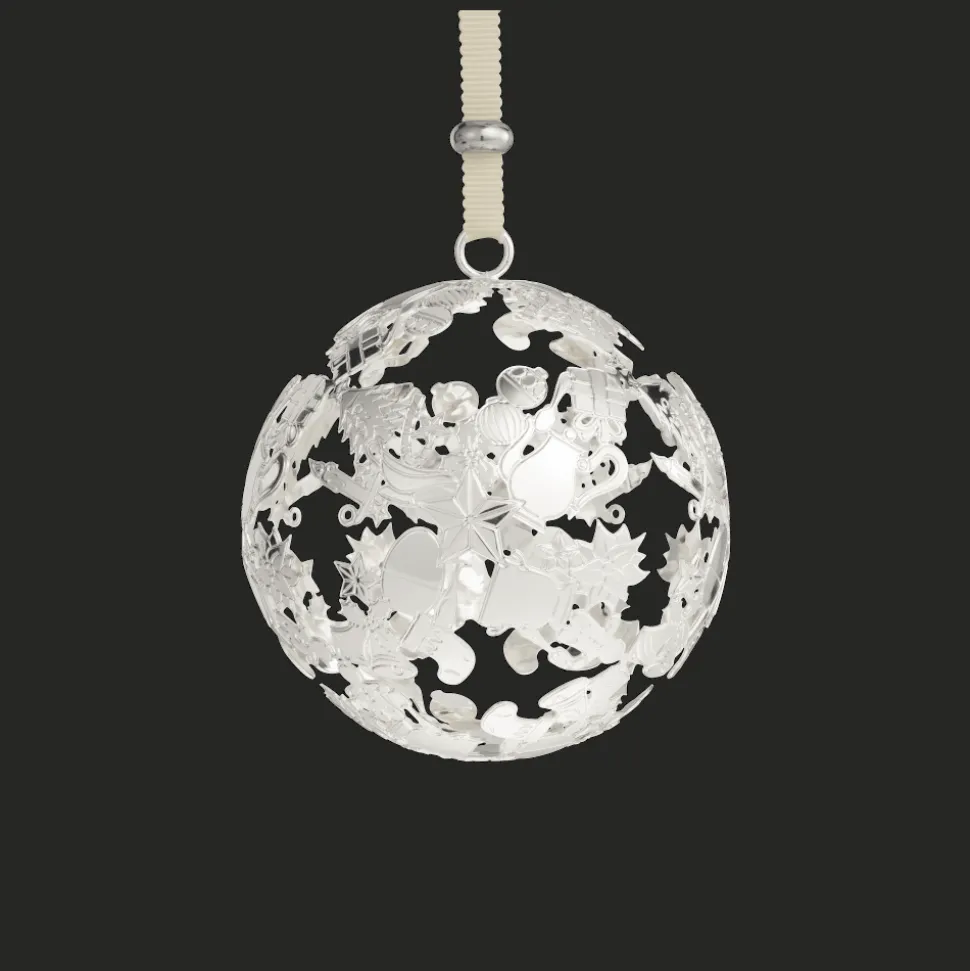 Chaque année pour célébrer les fêtes de fin d’année, Christofle propose différents ornements dont une boule de Noël en métal argenté ou métal dorée.