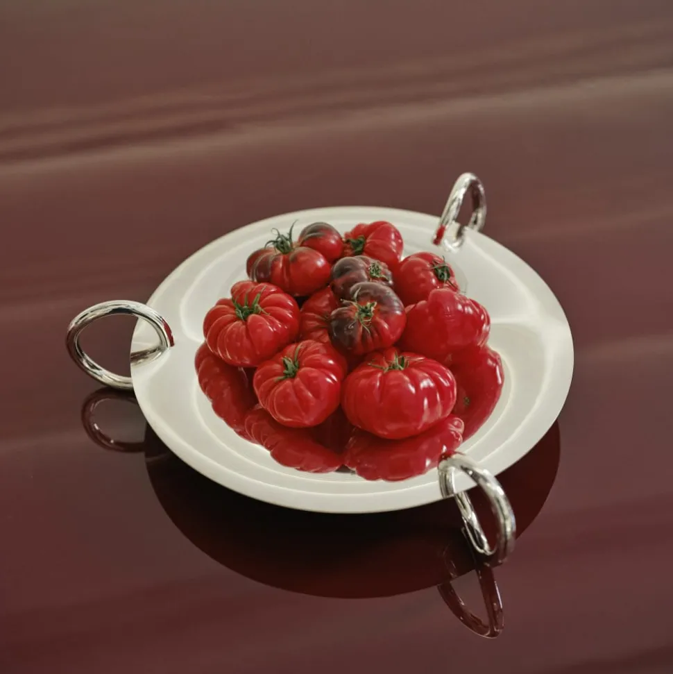 Coupe à fruit en métal argenté pouvant également servir de centre de table.