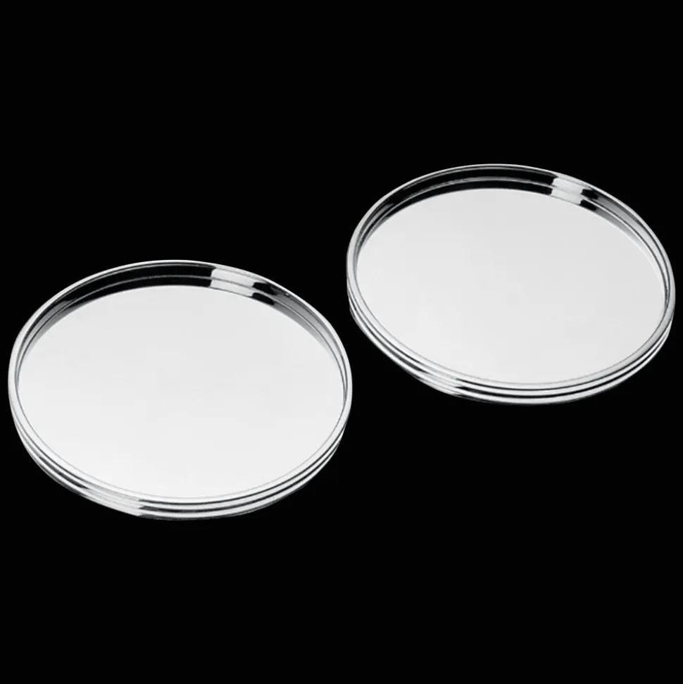 Coffret de deux dessous de verre en métal argenté. Ces dessous de verre permettront d’amener un élément décoratif à votre table cocktail tout en évitant de tâcher votre table.