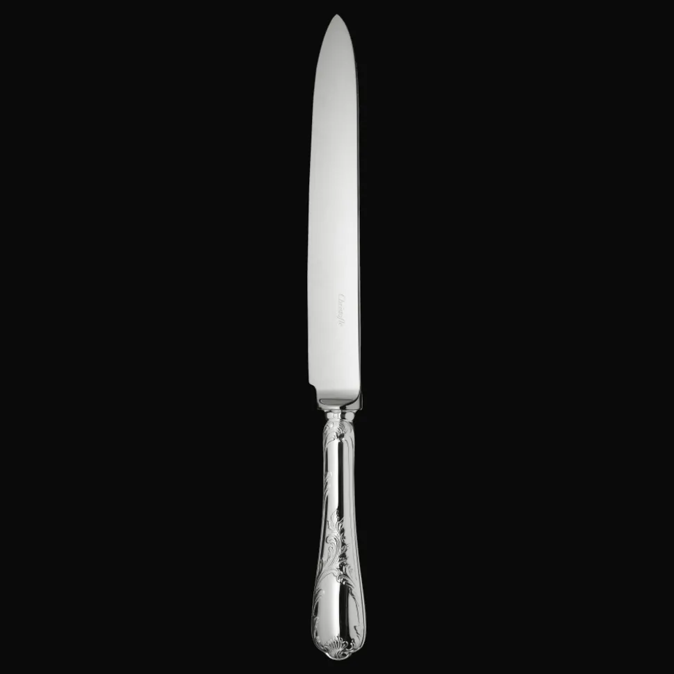 Couteau à découper en métal argenté, idéal pour découper et servir viandes et rôtis à table.