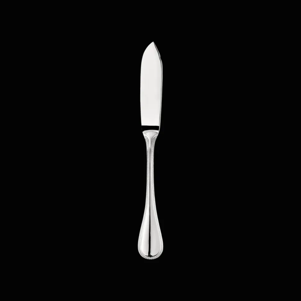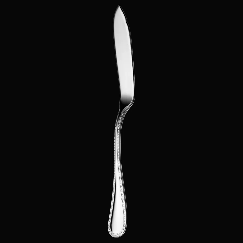 Couteau à poisson en acier. Combiné à la fourchette à poisson, il est utile pour détacher la chair de poisson des arrêtes et la soulever.