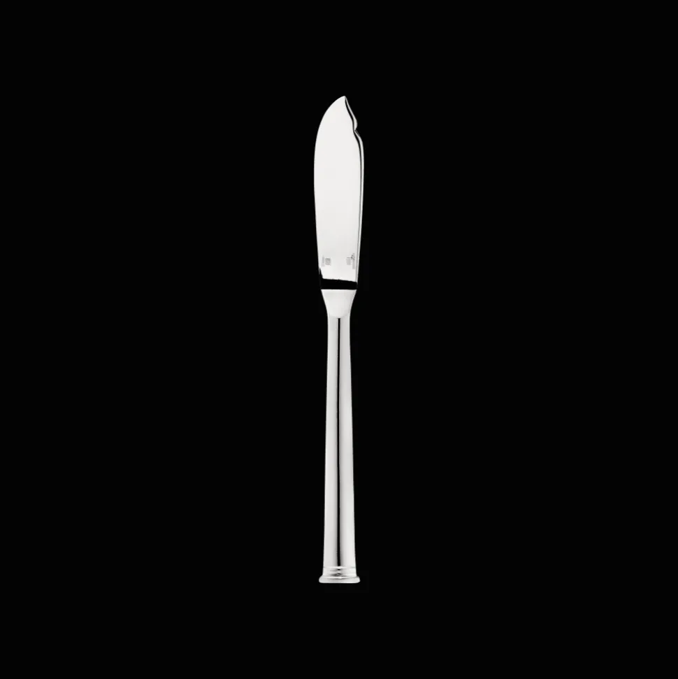 Couteau à poisson en métal argenté. Combiné à la fourchette à poisson, il est utile pour détacher la chair de poisson des arrêtes et la soulever.
