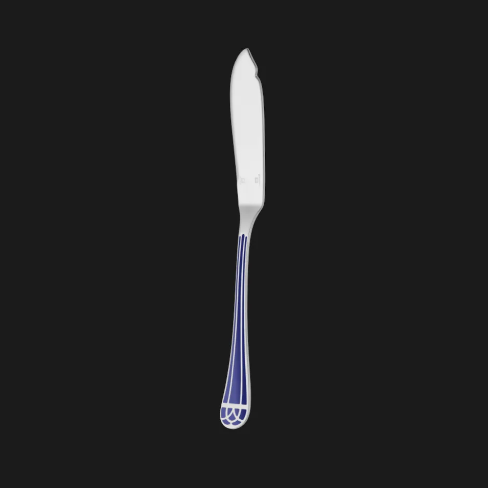 Couteau à poisson Talisman Bleu Marbré en métal argenté. IMPORTANT : Le modèle disponible est bleu avec détails marbrés (se référer à la photo zoomée du manche du couvert).
