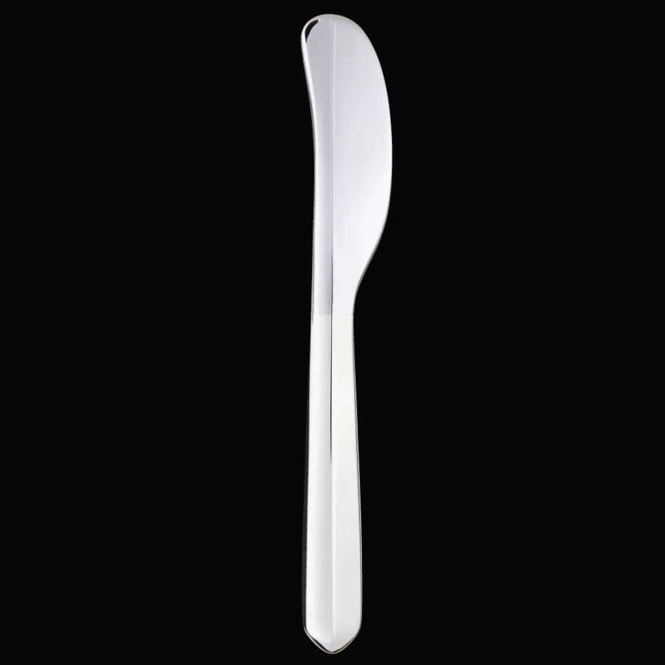 Le manche du couteau à tartiner est en métal-argenté et la lame est en acier inoxydable. Il possède une finition polie miroir. Ce couteau à tartiner assure une bonne prise en main et un bon équilibre grace à ses lignes fluides et arrondies.