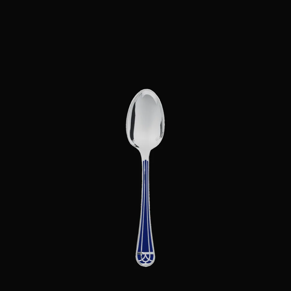Cuillère à dessert en métal argenté Talisman Bleu Marbré. IMPORTANT : Le modèle disponible est bleu avec détails marbrés (se référer à la photo zoomée du manche du couvert). Combinée avec la fourchette et le couteau à dessert, la cuillère à dessert peut être utilisée aussi bien pour les entrées, la salade que le dessert.