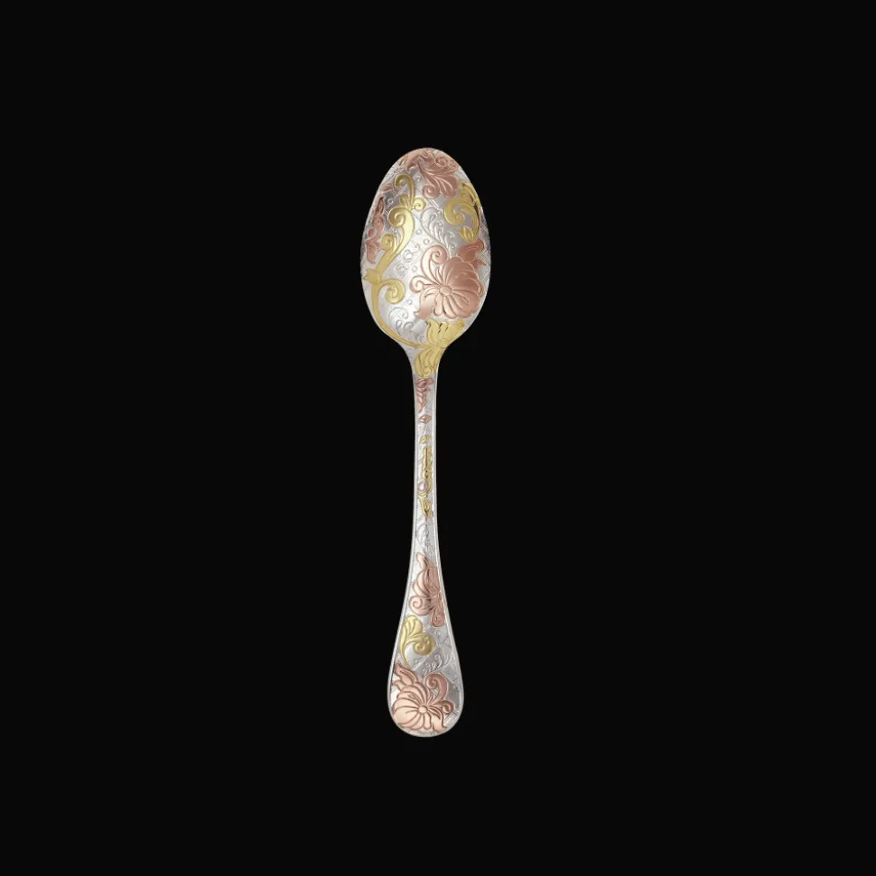Cuillère à dessert/entrée en métal argenté – dorure partielle deux ors (or jaune et or rose)