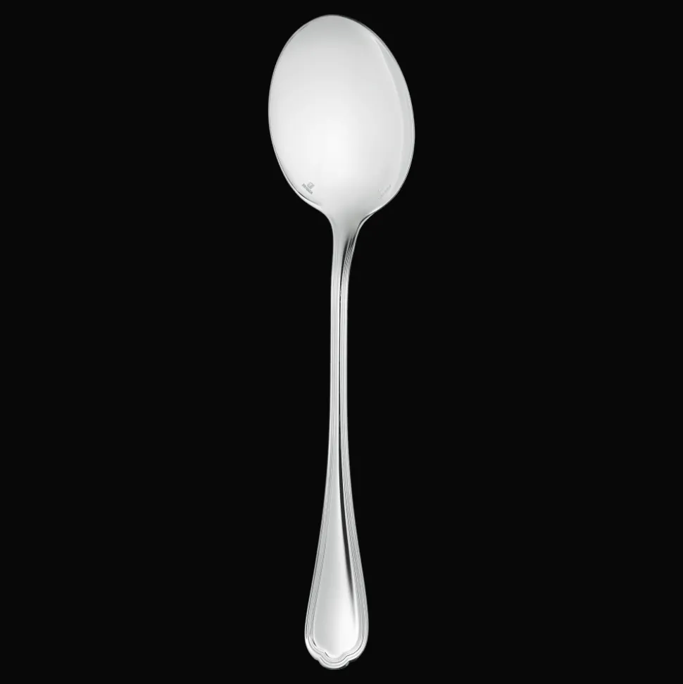 Ce couvert à servir la salade se caractérise par la rondeur de son cuilleron.Assemblée à la fourchette à servir, ces pièces forment une pince permettant de saisir les feuilles de mâche, roquette ou autres salades composées.