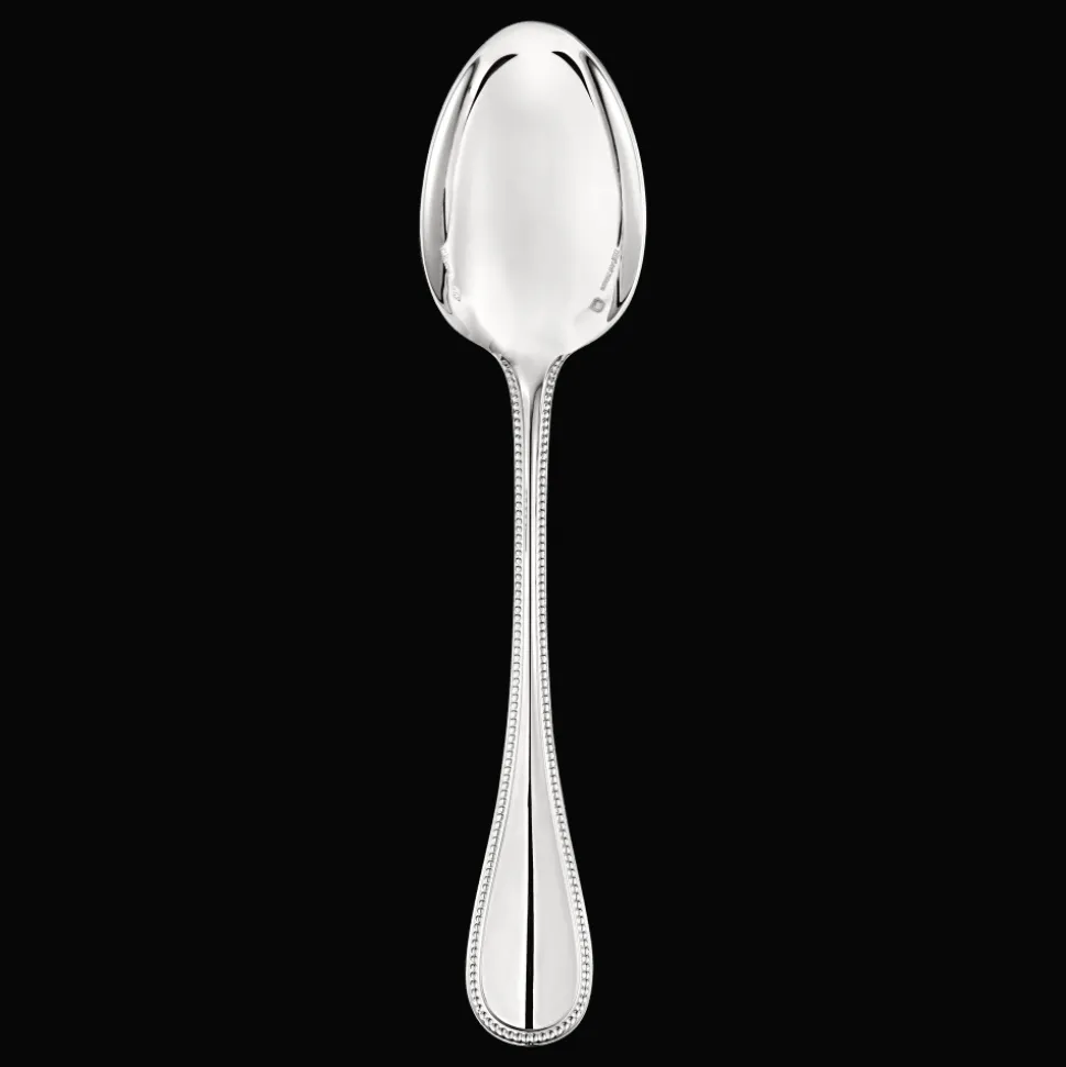Cuillère à soupe en Argent Massif Perles. La cuillère à soupe est un incontournable de vos tables dressées. Créé en 1876, ce décor intemporel souligne tel un collier de perles le contour du couvert.