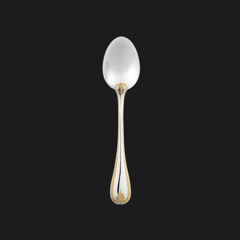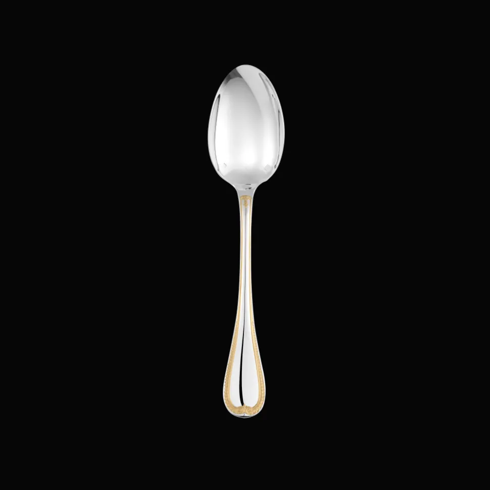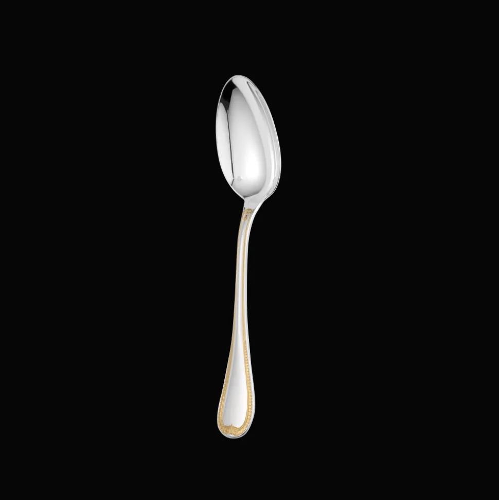 Cuillère à soupe en métal argenté et dorure partielle, pièce indispensable du service.
