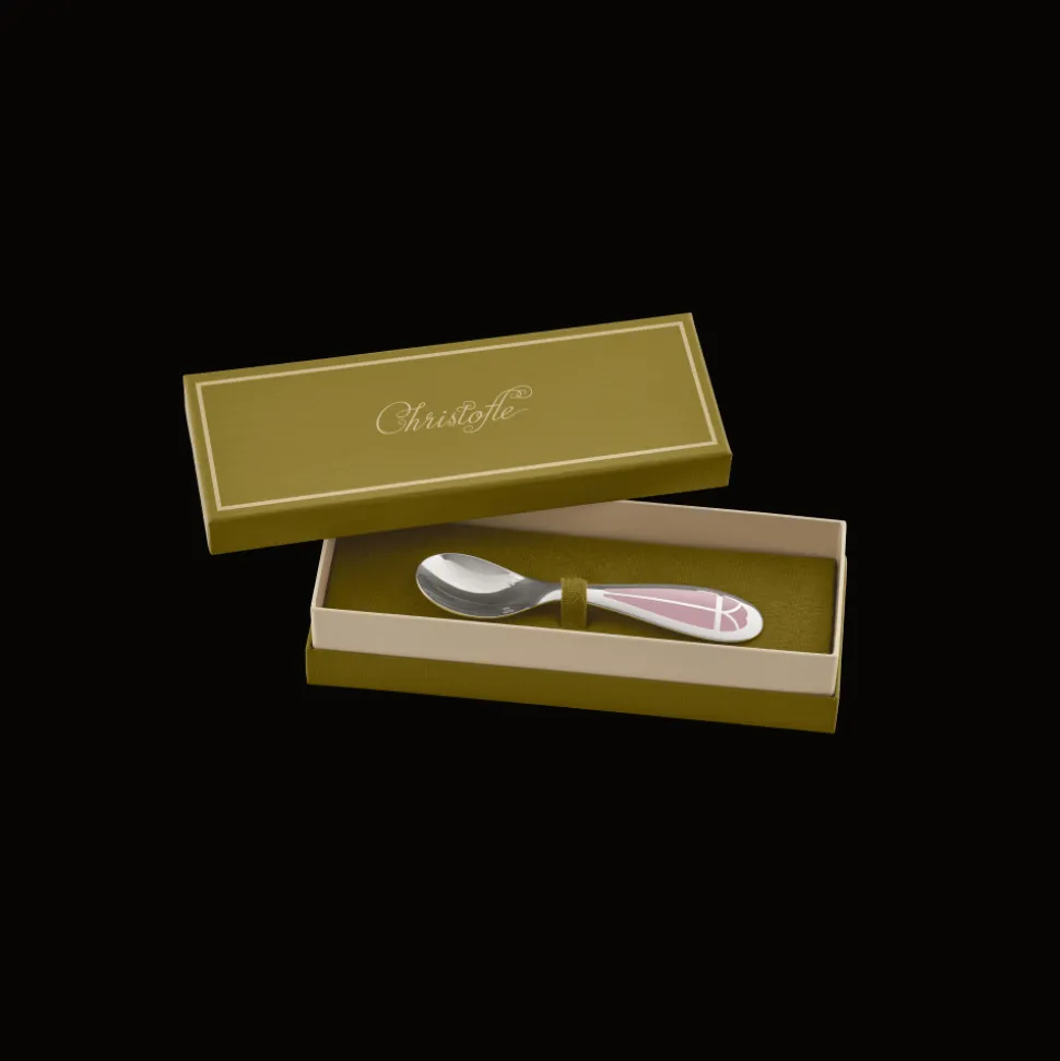 Cette jolie cuillère Rose Quartz en métal argenté et laque, accompagnée de sa boîte naissance, sera le cadeau parfait pour les tout petits.