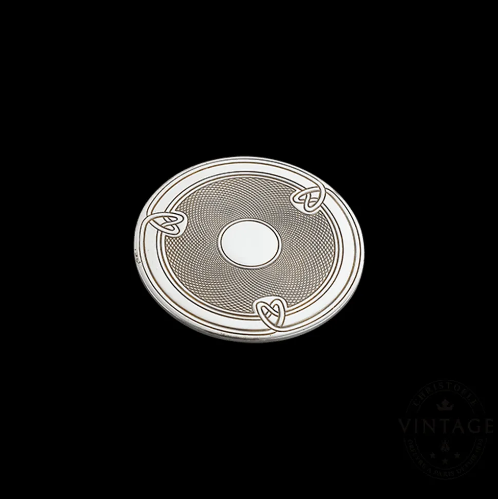 Ces dessous de verre dits « Louis-Philippe » en métal argenté sont créés par la Maison Christofle en 1979. Ils portent un motif de cœurs tressés sur un fond guilloché, qui leur donnent leur relief. Leur nom est une évocation du premier grand client de Christofle, qui a commandé dès 1844 un service pour sa résidence royale normande d’Eu.