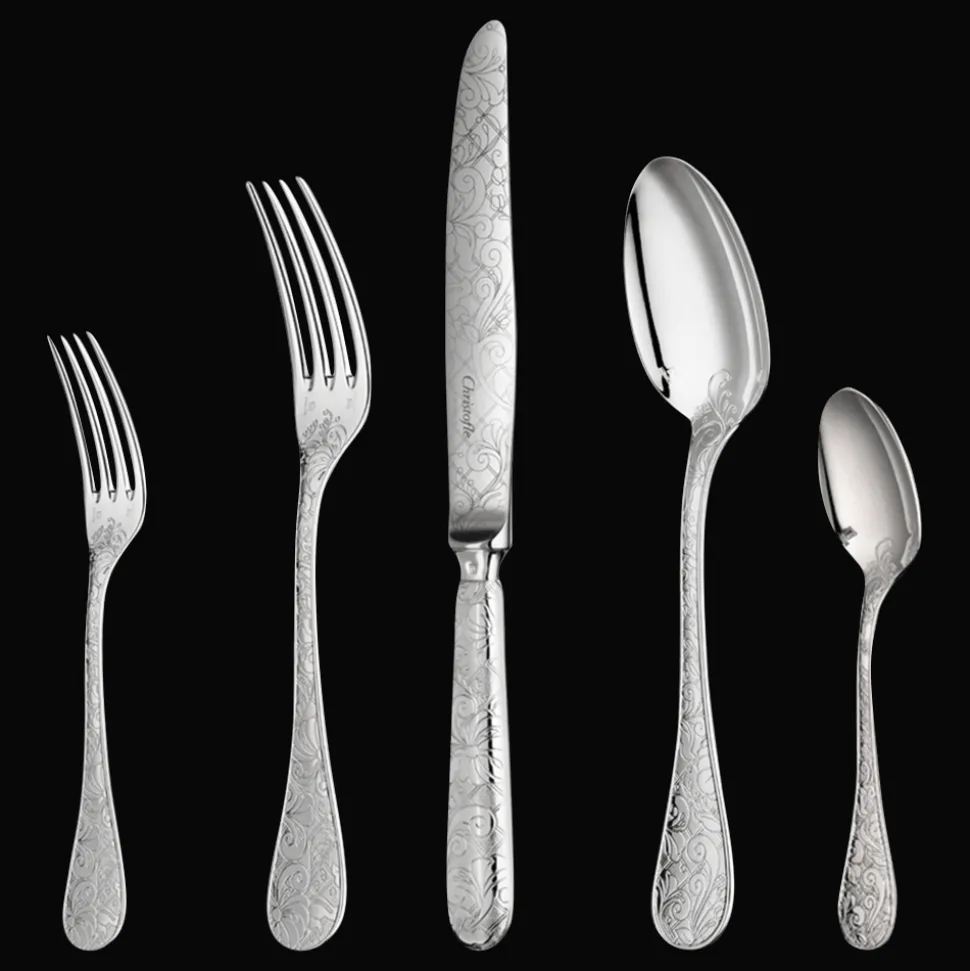 Cet ensemble correspond aux 5 pièces indispensables par personnes : fourchette de table, cuillère de table, couteau de table, fourchette à salade et cuillère à thé.