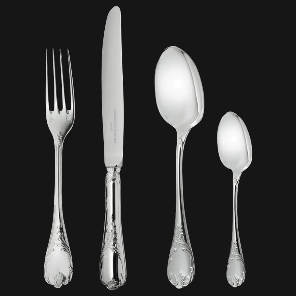 Crée en 1897, ce modèle doit son nom au château de Marly, charmante villégiature de Louis XIV. Marly traduit la richesse et le raffinement d’une table « à la française », tout en restant très actuelle, de par l’hommage qu’elle rend au végétal qui constitue son ornement principal.