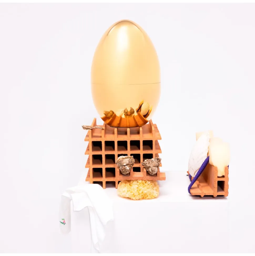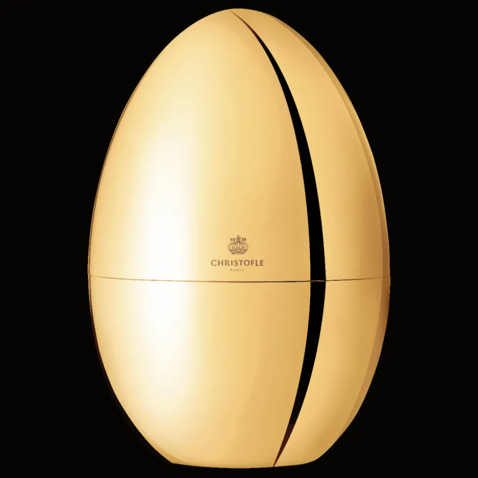 L’écrin est en métal doré à l’or 24 carats et le socle intérieur en bois de noyer.