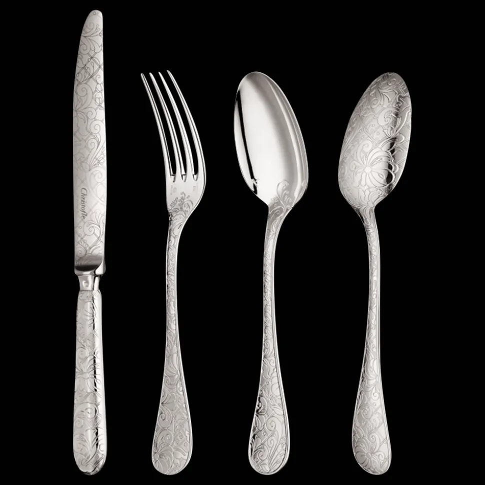 La collection de couverts Jardin d’Eden a été créée en 2010 par Marcel Wanders studio, grand nom du design contemporain. Métal argenté, argent massif ou en vermeil, les arabesques de ces pièces luxuriantes s’harmonisent avec la porcelaine et les pièces d’orfèvrerie de la même collection.