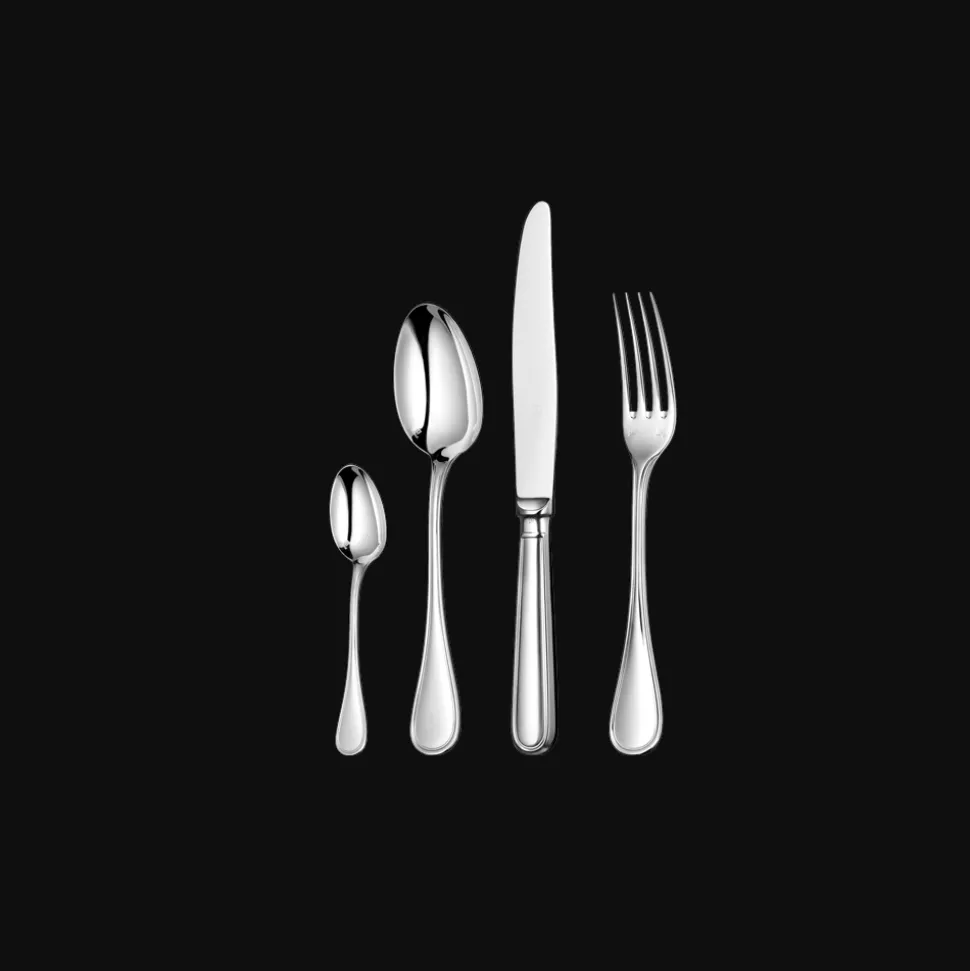 Cette ménagère 6 personnes appartient à la collection Albi. Né en 1968, il devient rapidement un nouveau classique Christofle ; aujourd’hui il offre le plus grand nombre de couverts dans sa gamme. Le nom provient de la ville d’Albi, qui se trouve entre Toulouse et Bordeaux en France. La célèbre cathédrale fortifiée d’Albi avec les lignes droites et épurées de sa nef unique a inspiré ce modèle.