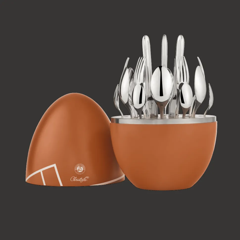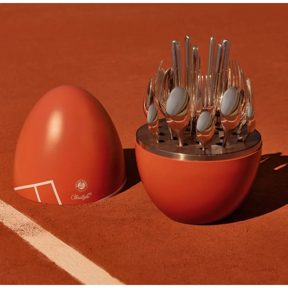 En 2024, Christofle revisite l’emblématique MOOD en collaboration avec le plus prestigieux tournoi de tennis français Roland-Garros. Trois nouvelles références se parent de couleur «Terracotta» : le MOOD by Christofle, ainsi que ses versions Party et Coffee. Des exclusivités évoquant la terre battue des illustres courts de tennis.