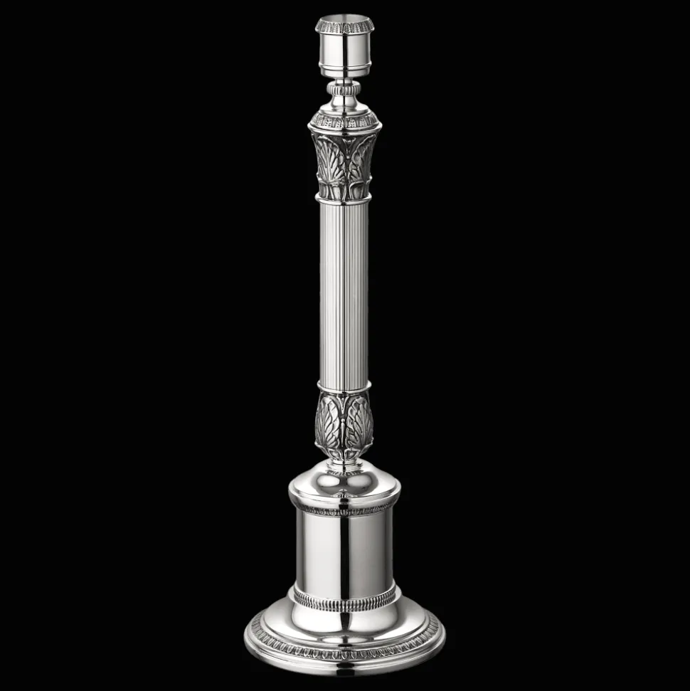 Flambeau en métal argenté issue de l’iconique collection de style empire. Objet de décoration intemporel, pour décorer un intérieur classique et raffiné. Bougeoir individuel pour décorer une table et acceuillir une bougie seule.