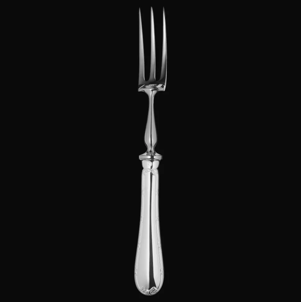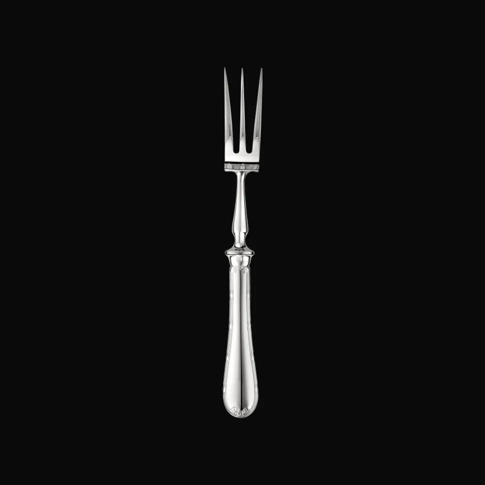 Fourchette à découper en métal argenté. Utilisée avec le couteau à découper, elle est idéale pour découper et servir viandes et rôtis à table.