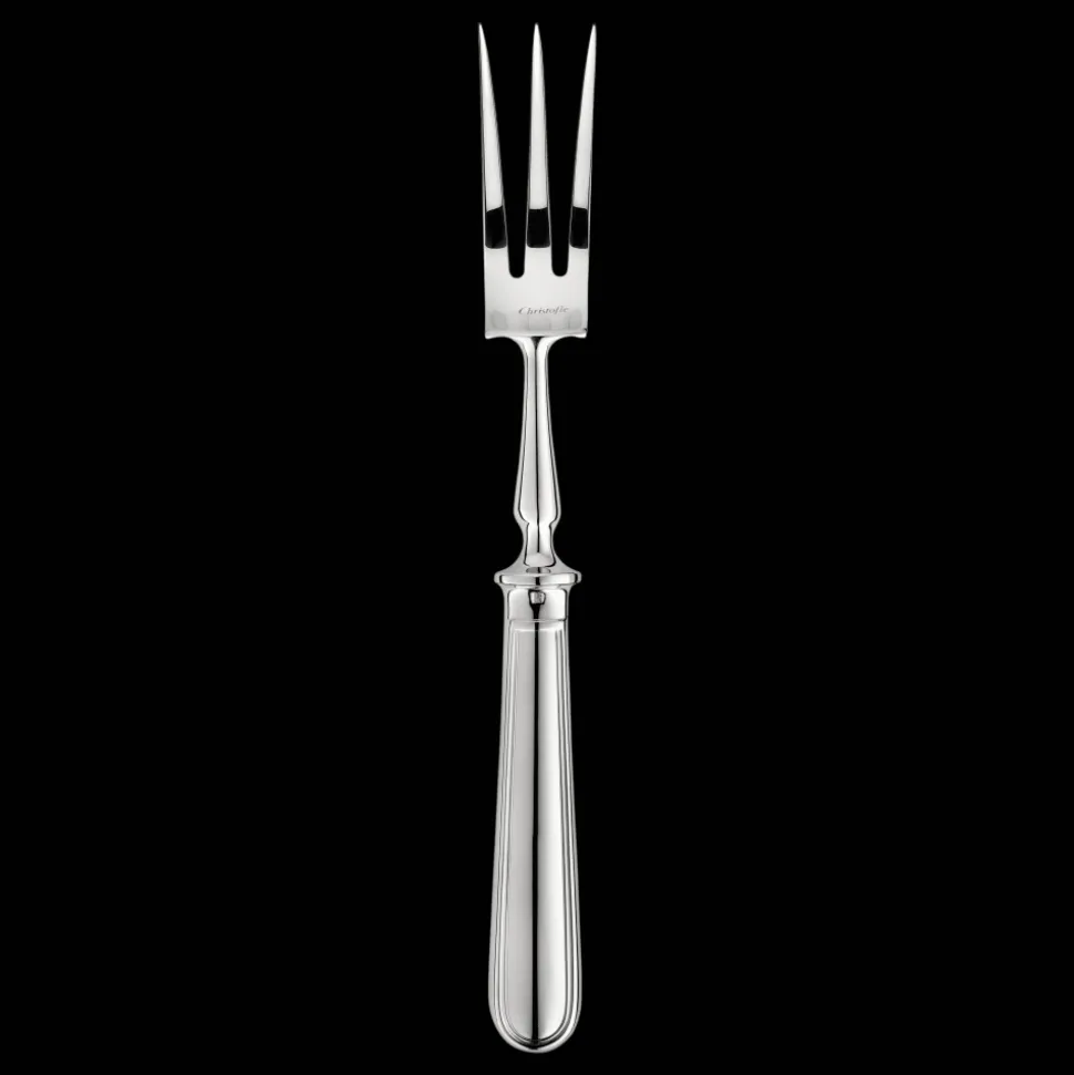 Fourchette à découper en métal argenté. Idéale avec le couteau assorti pour découper et servir les viandes.