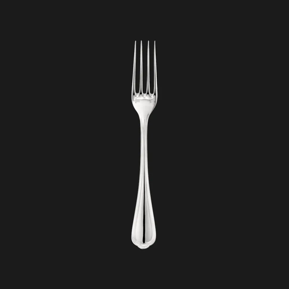 Fourchette à dessert en métal argenté. Combinée avec le couteau à dessert, elle peut être utilisée aussi bien pour les entrées, la salade que le dessert.