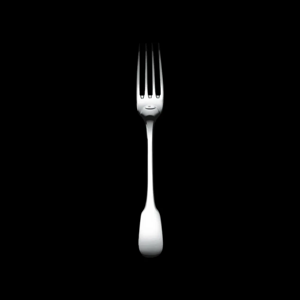 Fourchette à dessert en métal argenté. Combinée avec le couteau à dessert, elle peut être utilisée aussi bien pour les entrées, la salade que le dessert.