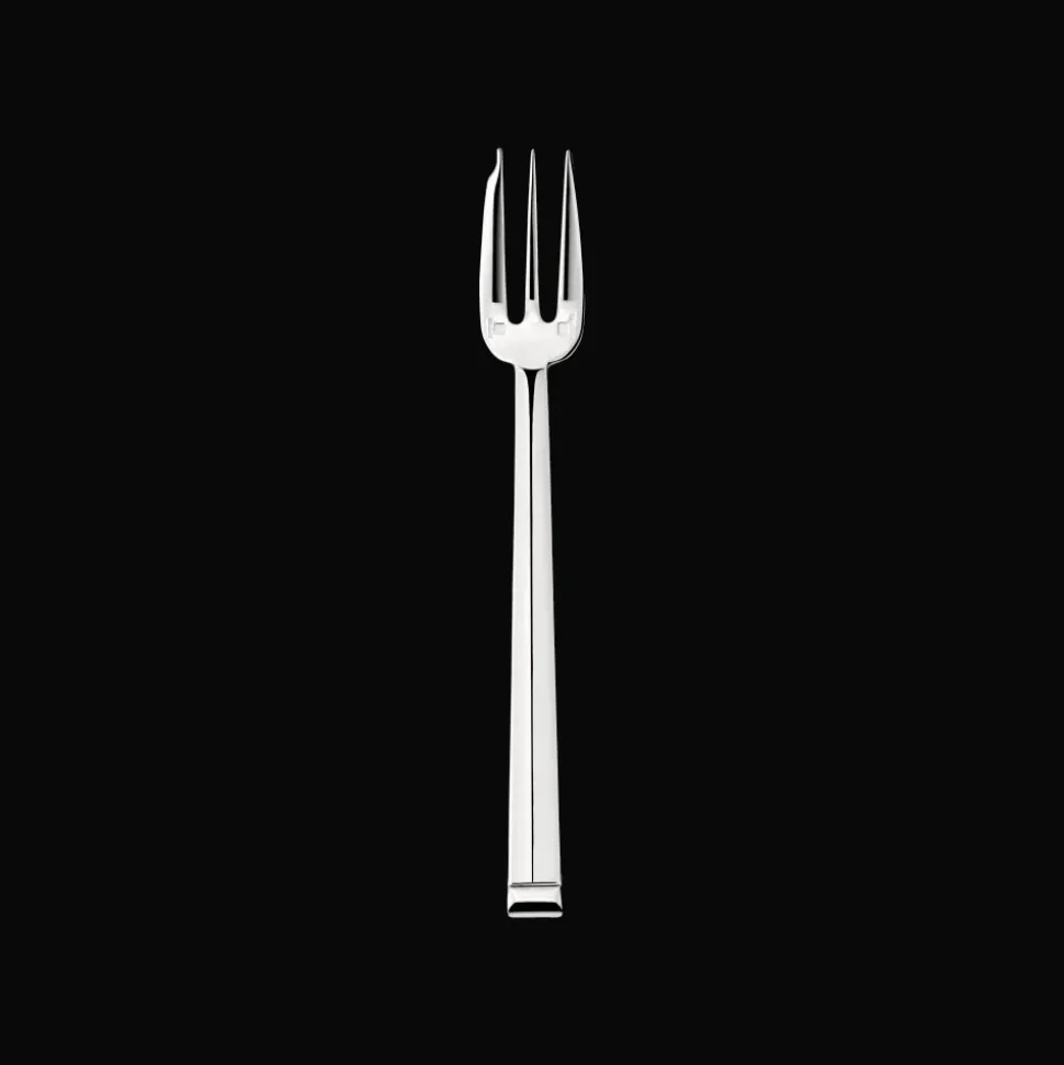 La fourchette à gâteau en métal argentée de la collection BY possède un large bord conçu spécialement pour couper les gâteaux et les tartes dans l’assiette. Créé en 1991, BY est l’un des modèles les plus modernes de Christofle, avec ses lignes pures et fortes et son absence d’ornementation. C’est le premier modèle de la collection dont le couteau repose sur sa propre lame.