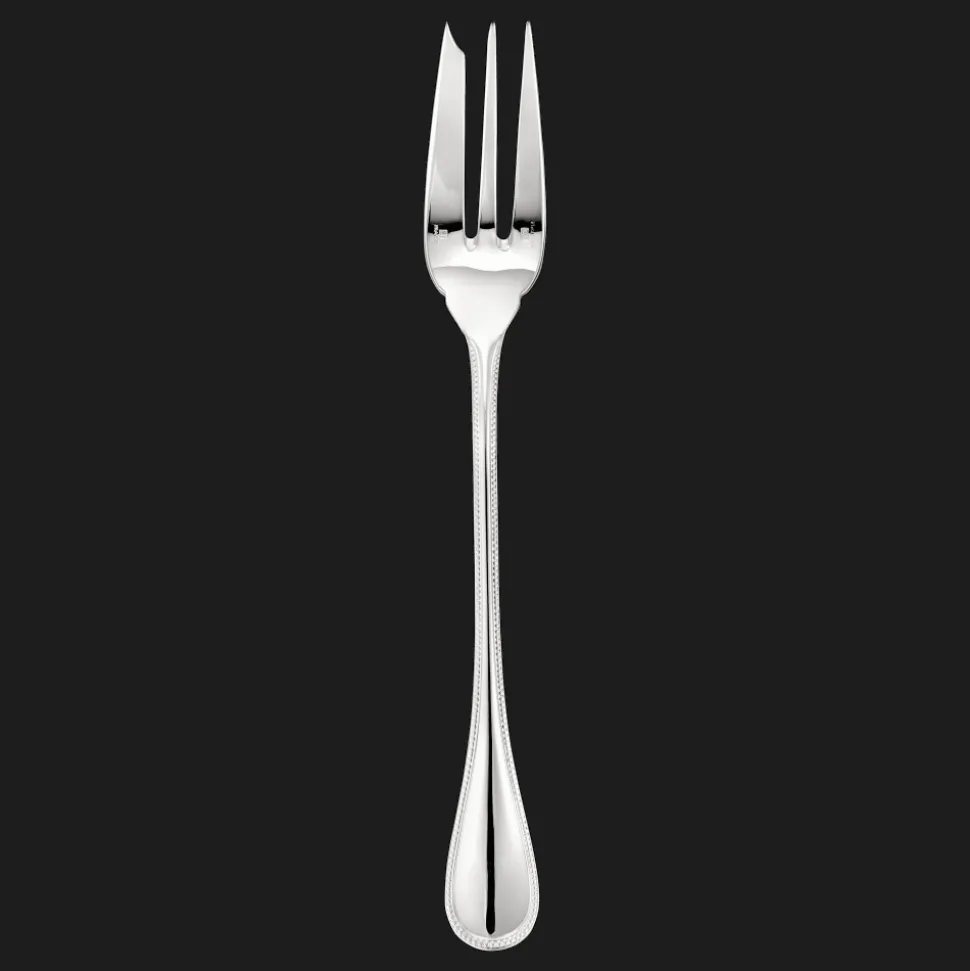 Fourchette à servir en métal argenté pour les viandes et les légumes. La longueur de cette fourchette à servir est adaptée à la dimension des plats afin qu’ils ne glissent pas au fond.