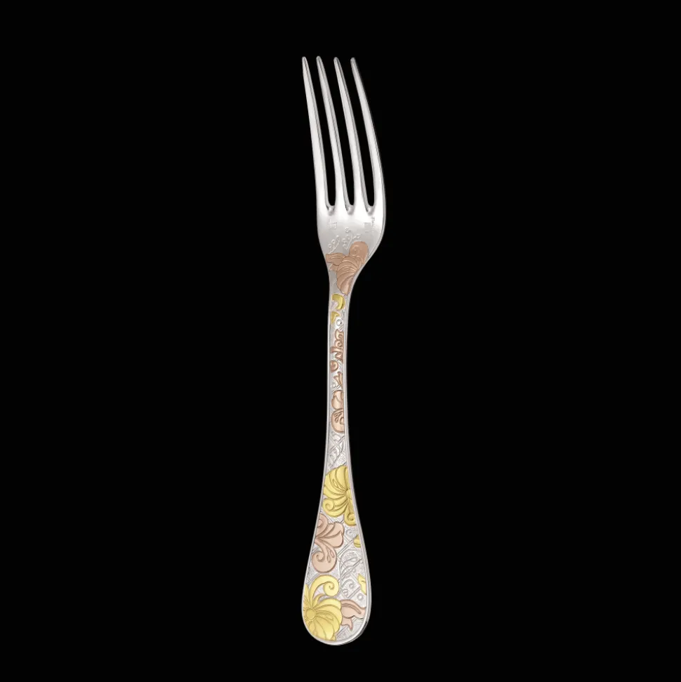 Fourchette de table en métal argenté – dorure partielle deux ors (or jaune et or rose)