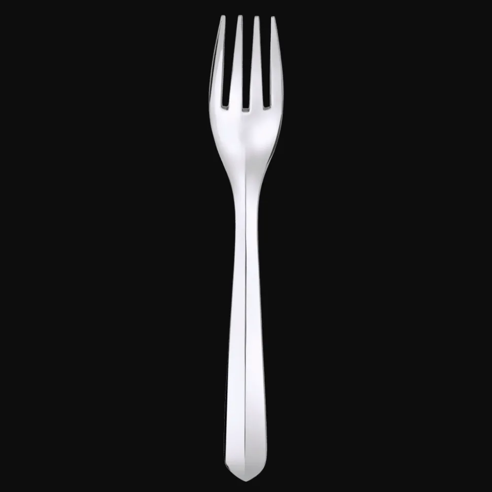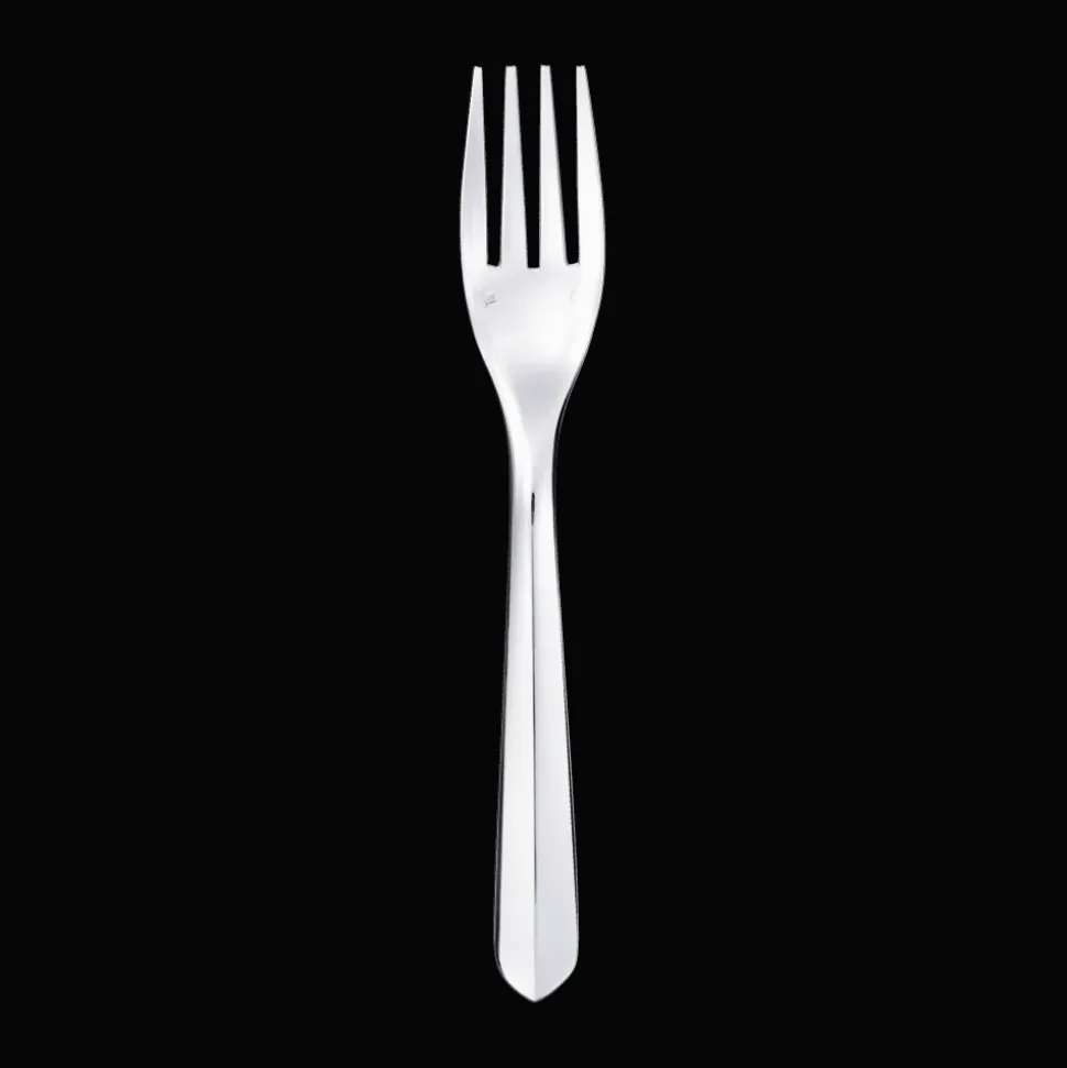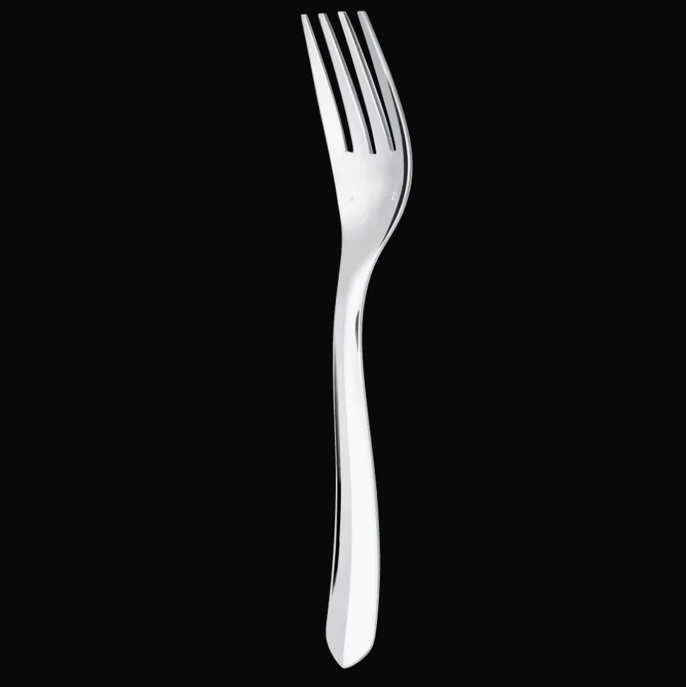 La fourchette universelle medium est en métal argentée, et possède une finition polie miroir. Cette fourchette assure une bonne prise en main et un bon équilibre grâce à ses lignes fluides et arrondies. La générosité de ses dents en font une pièce idéale pour le poisson.