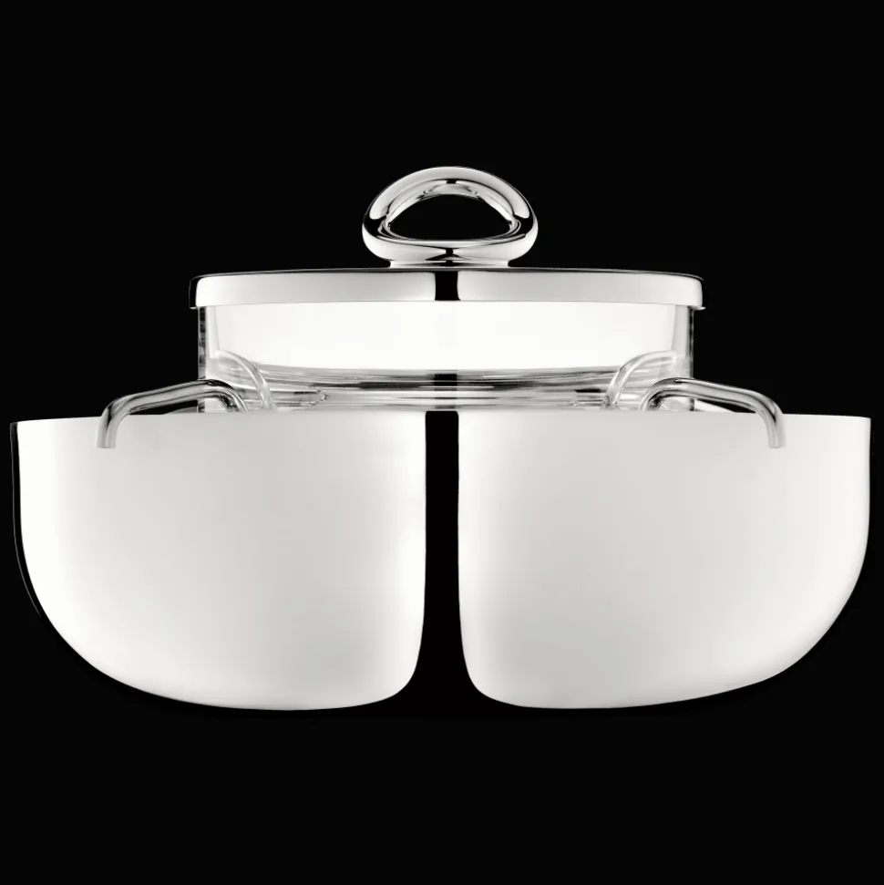 Service à caviar en métal argenté de la collection vertigo. La collection Vertigo se caractérise par un emblème fort : un anneau, au dessin sensuel et volontairement asymétrique, qui se retrouve sur chaque pièce. Complétez votre set à caviar Albi avec la cuillère à caviar en corne et métal argenté Albi référence B04224635.