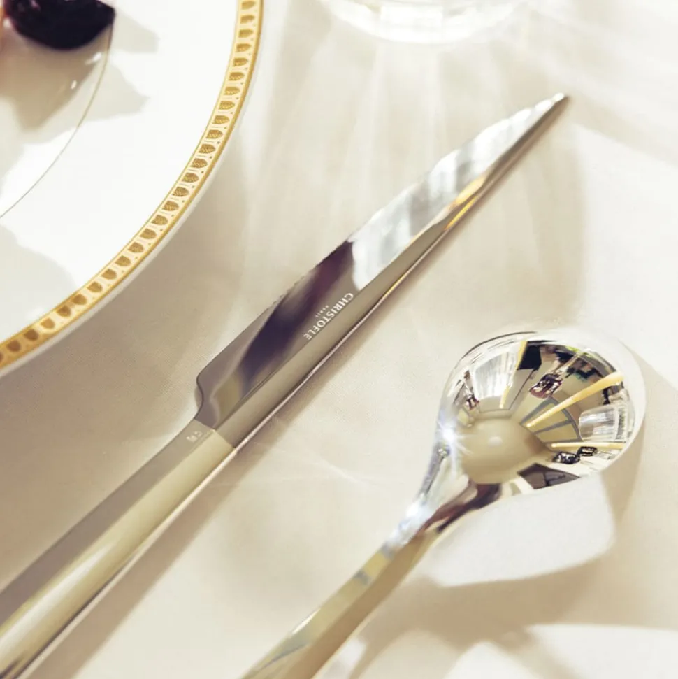 La maison d’orfèvrerie Christofle revisite les usages de la table avec sa nouvelle collection de couverts essentiels baptisée Infini Christofle.