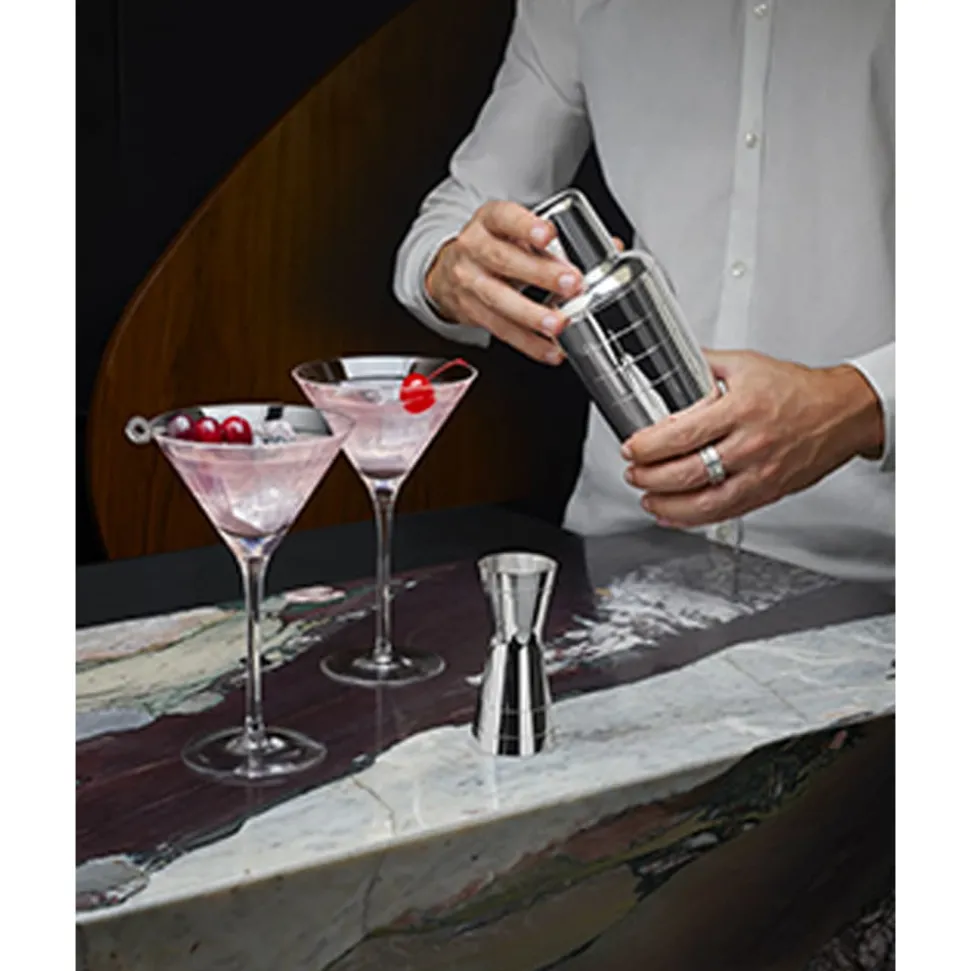 Le jigger fait partie des ustensiles de bar indispensables. Double doseur 2/4cl permettant de mesurer avec précision la dose de liquide pour un dosage de qualité nécessaire à la préparation de vos cocktails et autres boissons. La partie la plus fine à l’intersection des deux doseurs est un point d’adhérence permettant une meilleure prise en main pour un design à la fois esthétique et ergonomique. La collection GRAPHIK évolue pour proposer une gamme complète centrée sur l’univers du bar et la préparation des cocktails. Depuis quelques années, le cocktail fait son retour en grâce. Réduit à sa plus simple expression depuis les années 80, il s’impose désormais comme l’une des boissons les plus « hype » du moment. Les nouvelles créations ont été réalisées en métal argenté dans le respect des codes identitaires et des valeurs de la Maison. Le motif GRAPHIK dans sa taille moderne et emblématique s’inscrit dans un rythme différent d’une pièce à l’autre. Avec cette extension, GRAPHIK vous accompagne tout au long de votre soirée : dès la préparation de vos cocktails jusqu’à la présentation de vos plus belles bouteilles. Notre offre de service de bar se démarque par sa créativité, son élégance et sa fonctionnalité. Toute la collection est fabriquée en France.
