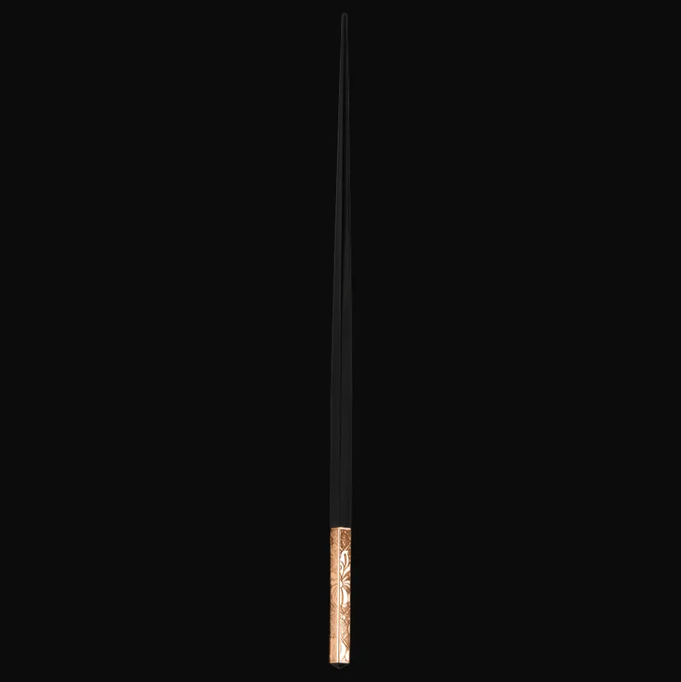 Baguettes japonaises en bois d’ébène et métal argenté finement gravées du Design Jardin d’Eden par Marcel Wanders.