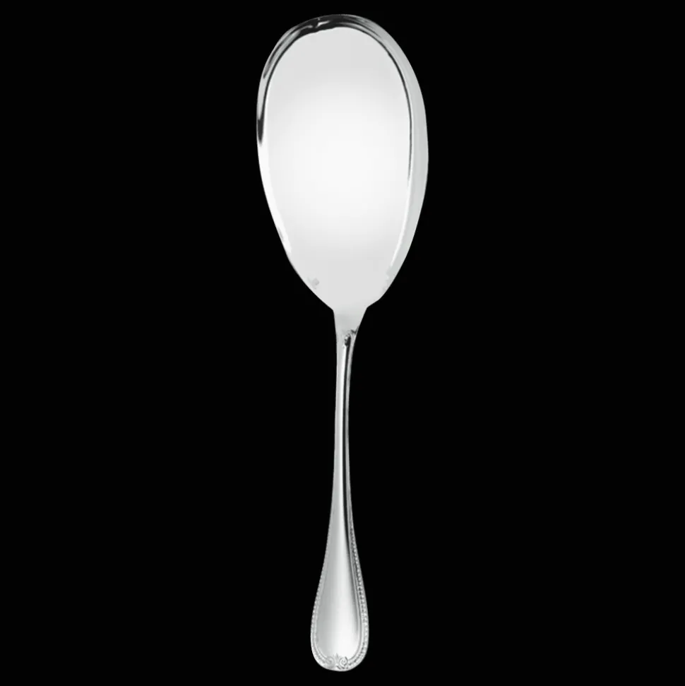 Pelle à servir le riz et les frites en métal argenté. Mis en collection en 1967, Malmaison est le modèle Empire de Christofle. Le château de la Malmaison, près de Paris, était le séjour préféré de Napoléon Bonaparte et de l’Impératrice Joséphine. Les feuilles d’eau, la feuille ajourée de lotus, la symétrie du décor sont typiques du style Empire, largement inspiré de l’Antique.