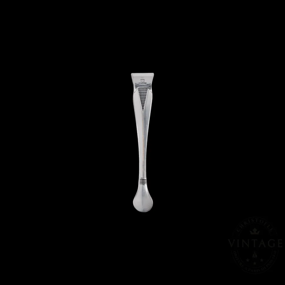 Cette pince à sucre appartient au modèle « Atlantide« , dessiné par Christofle en 1988. Son décor sobre et géométrique et sa forme épurée évoquent une réinterprétation de l’Art Déco, qui a durablement marqué l’orfèvrerie à partir des années 1920 et 1930.