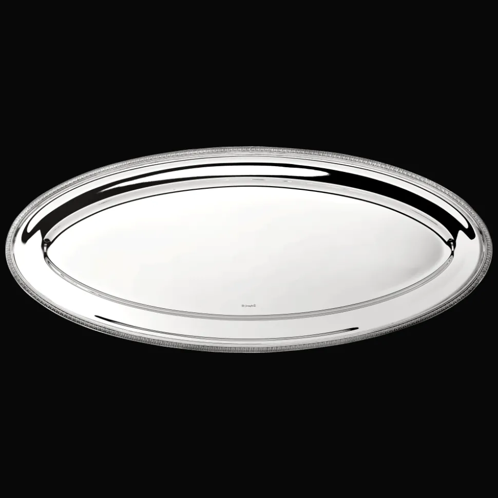 Plat à poisson en métal argenté de la collection Malmaison. Mis en collection en 1967, Malmaison est LE modèle Empire de Christofle. Le château de Malmaison, près de Paris, était le séjour préféré de Napoléon Bonaparte et de l’Impératrice Joséphine.