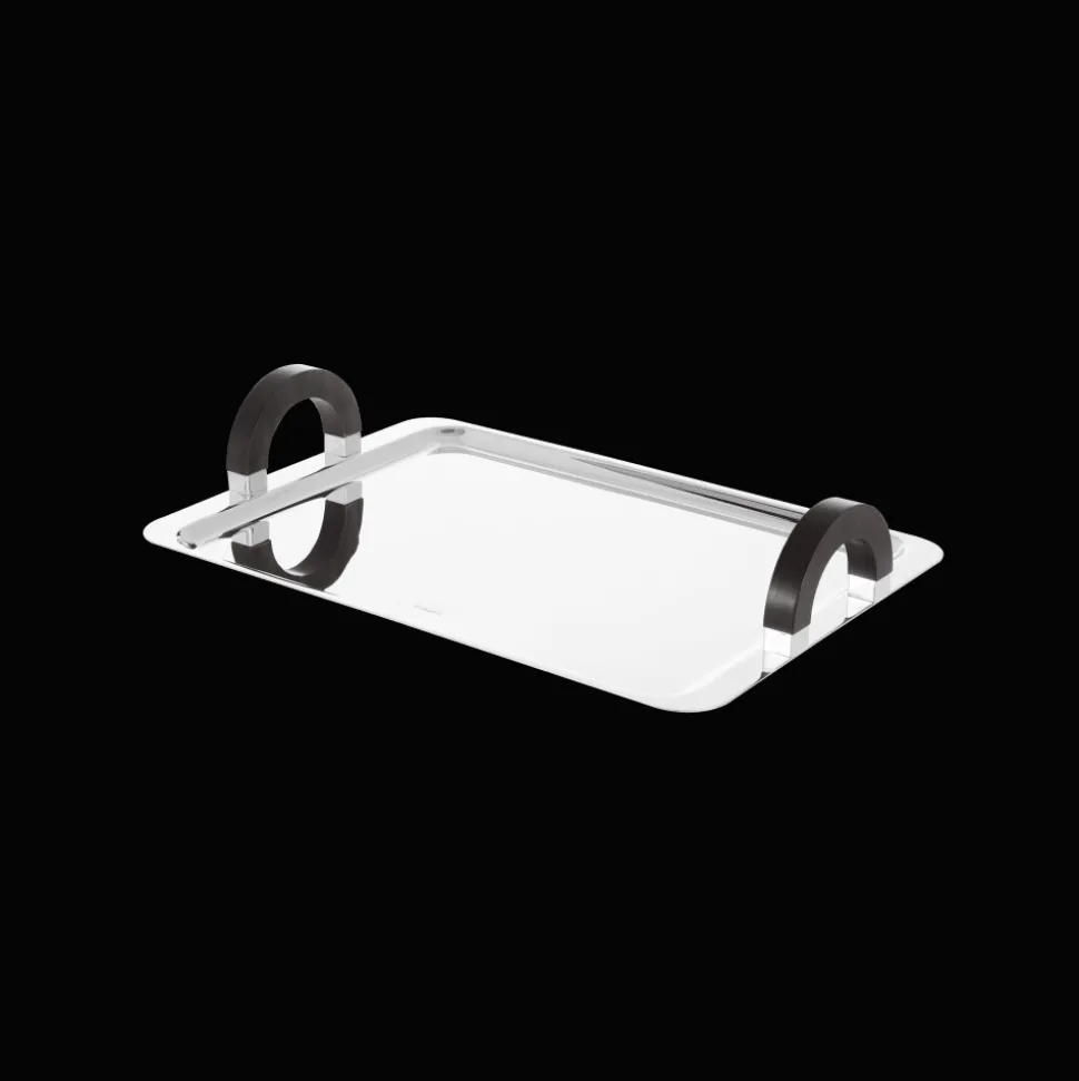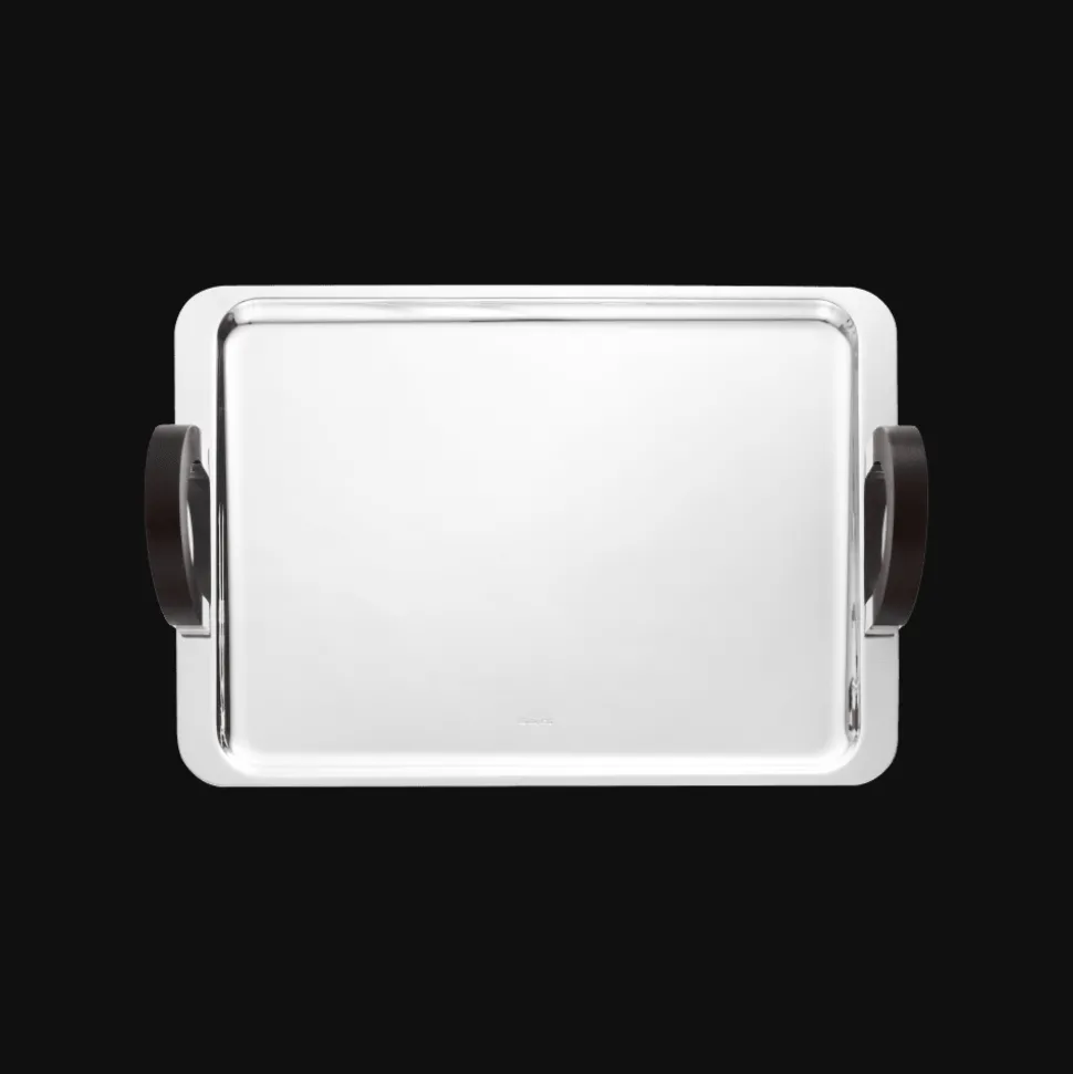 Le plateau « 1925 » incarne un absolu de style Art Déco. Orné de poignées en bois précieux, du palissandre Dos Santos teinté qui tranche avec la lumière de l’argent.