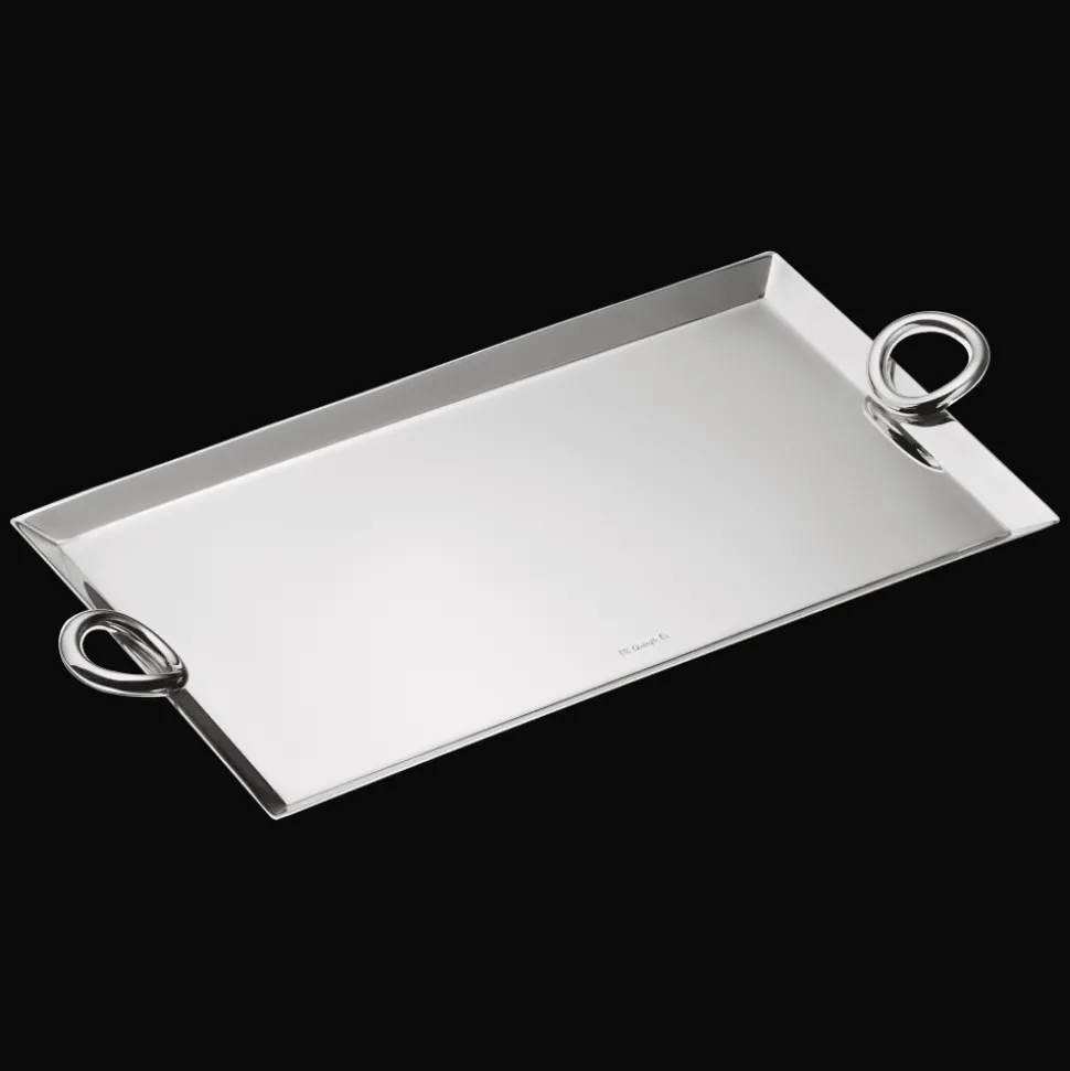 Plateau rectangulaire en métal argenté designé par Andrée Putman.
