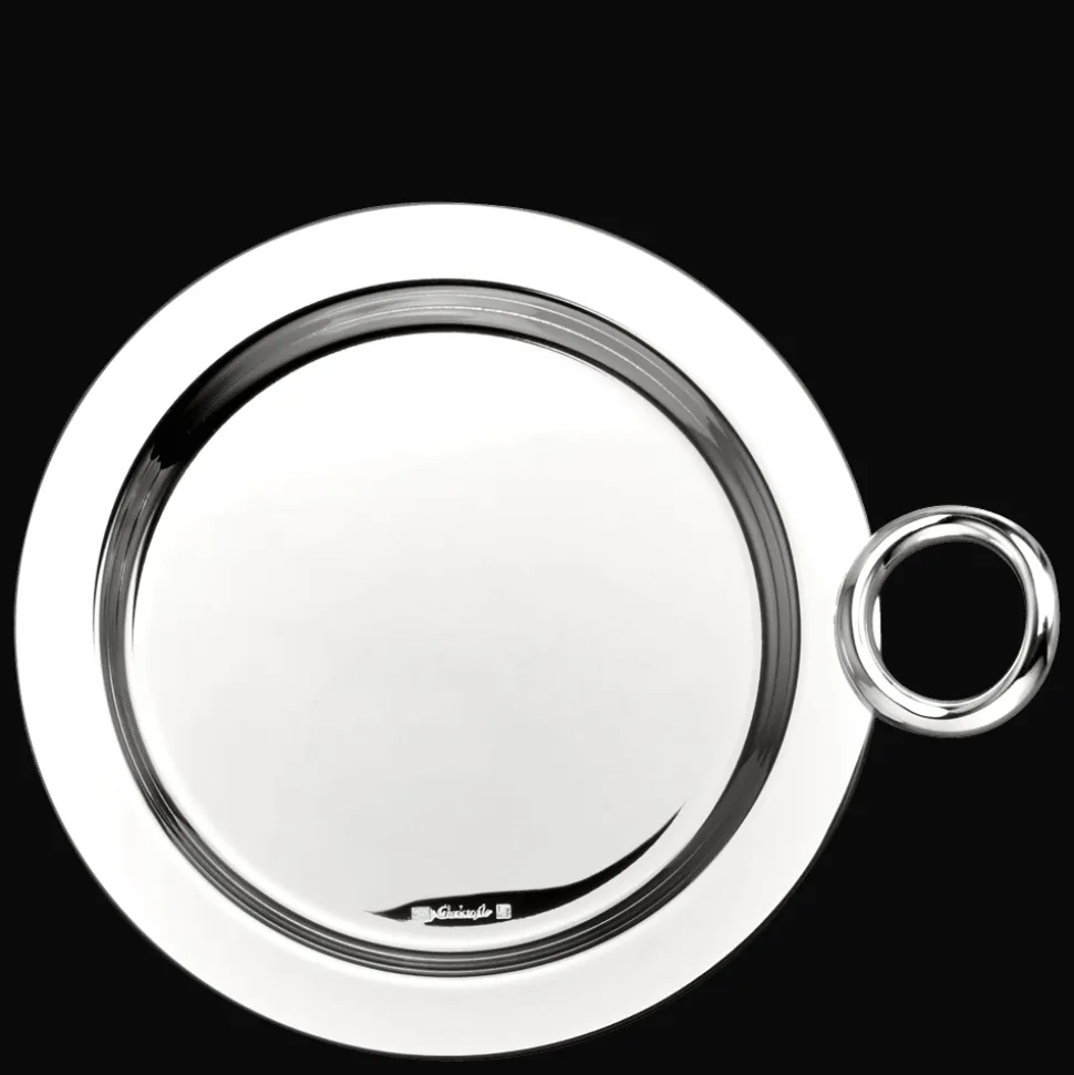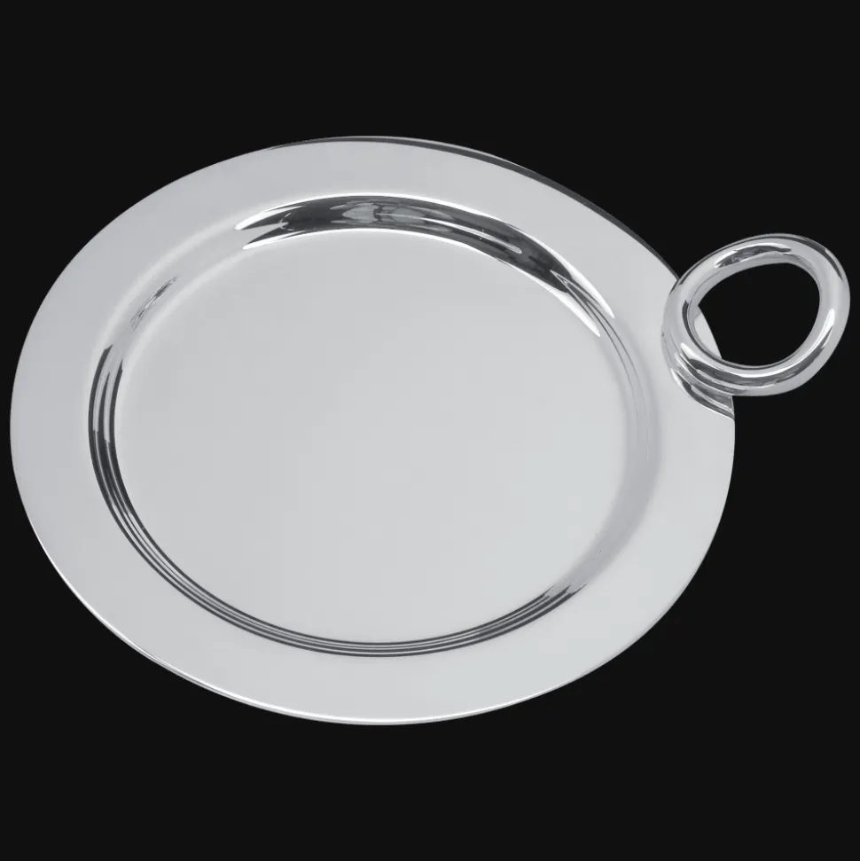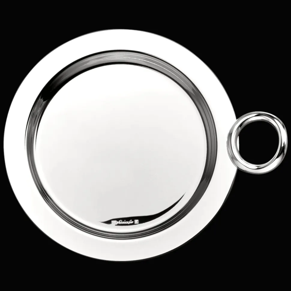 Plateau de carafe en métal argenté. Accessoire de table pour une table élégante et raffinée. Le décor reprend les codes stylistiques de la collection.