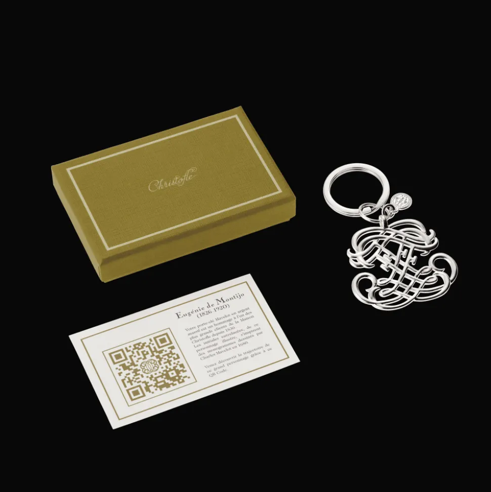 La collection de porte-clés Mavelot est un hommage aux plus grands clients de la Maison Christofle depuis 1830. Ils ont contribués au rayonnement de notre Maison. Porte-clés en argent massif représentant des initiales entrelacées dont l’entrelacement s’inspire des monogrammes dessinés par Charles Mavelot au 17è siècle. Réalisés comme des bijoux, l’argent est mis en valeur par sa finition poli miroir.